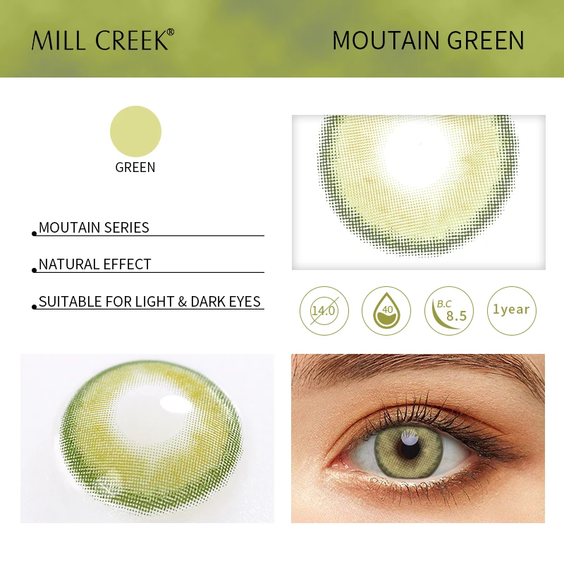 Посылка1 пара контактных линз (2 шт.)Спецификация:Место происхождения КитайБренд MILL CREEKНомер модели натуральныйИспользование циклов ежегодноМягкие линзыДиаметр: 14,0-14,5 ммТолщина центра 0,09 ммПосылка стеклянная бутылкаСодержание воды 40%Материалы HEMA-NVPБазовая кривая 8,5 ммИнформация о безопасности при ношении контактных линз.1. Всегда мойте руки перед ношением, снятием или обработкой контактных линз.2. Не одалживайте, не Занимайте и не пользуйтесь использованными контактными линзами, в противном случае это может привести к инфекции или даже слепоте для глаз.3. Пожалуйста, снимите линзы перед сном.4. Перед нанесением макияжа на глаза вставьте линзы и снимите линзы Перед снятием макияжа.5. Пожалуйста, не занимайтесь водными видами спорта при ношении линз.6. Новый контактный пользователь носит менее 4 часов в день. Когда ваши глаза приспособлены к линзам, вы можете носить их дольше, но не более 8 часов в день.