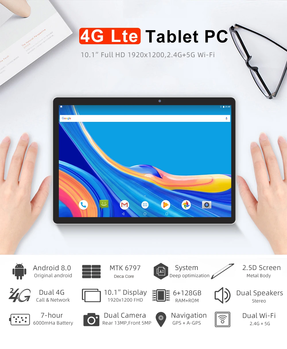 Новейшая модель; 10,1 дюймов MT6797 Deca Core, размер экрана 6 ГБ Оперативная память 128G Встроенная память подключается к сети 4G Планшеты ПК 1920X1200 IPS 135MP Камера 5G Wi-Fi, 8000 мАч, планшет