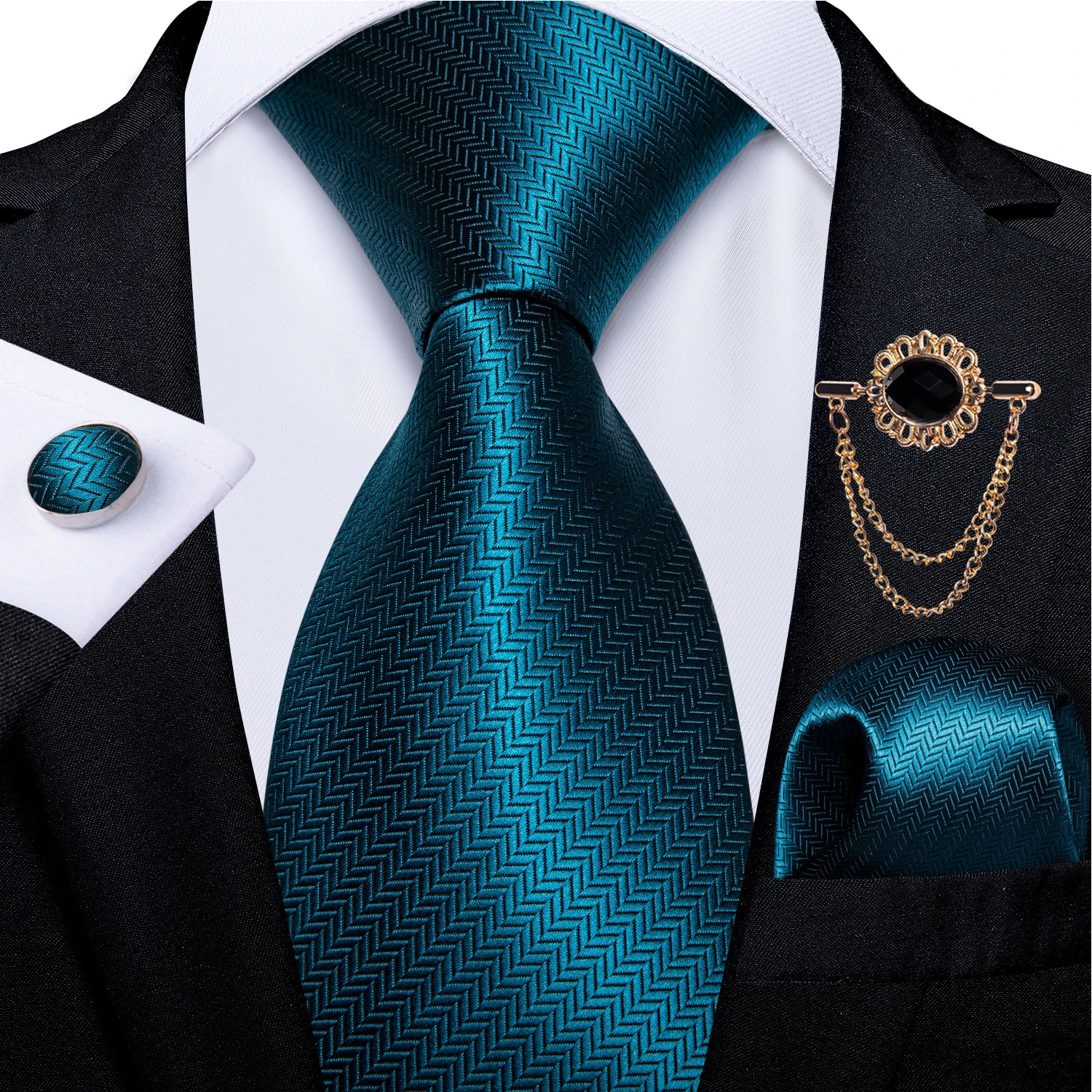 Чирок Синий однотонный мужской шелковый галстук 8 см Ширина Шеи Галстук платок Запонки Свадебный галстук цепочка с брошью подарок для мужчин DiBanGu