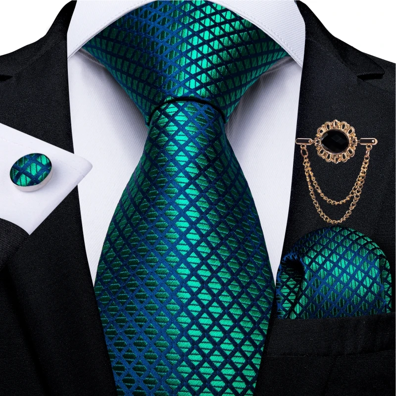 Новая модная Зеленая Мужская брошь галстук в клетку набор мужских ш...