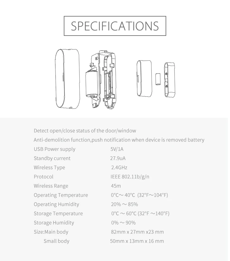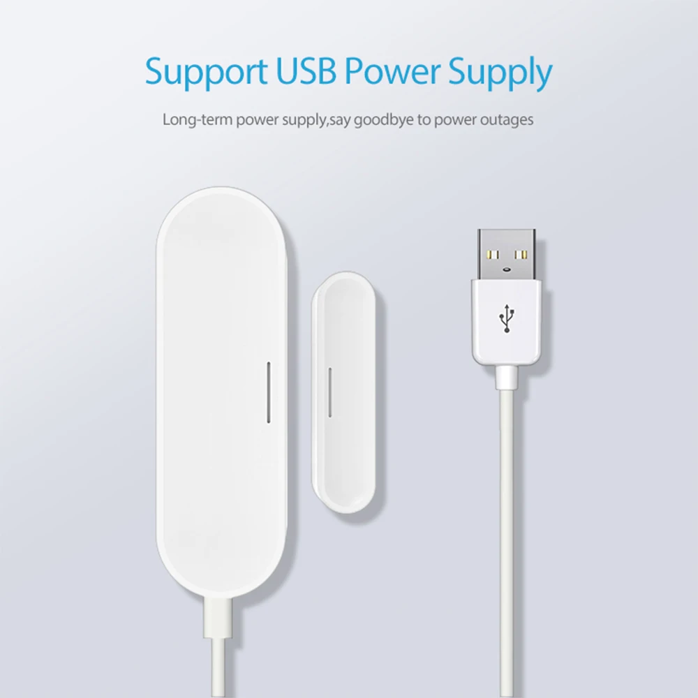 Смарт-датчик двери и окна Tuya с Wi-Fi и USB, детекторы открытиязакрытия, Домашняя безопасность, совместим с приложением AlexaGoogle HomeSmartLife