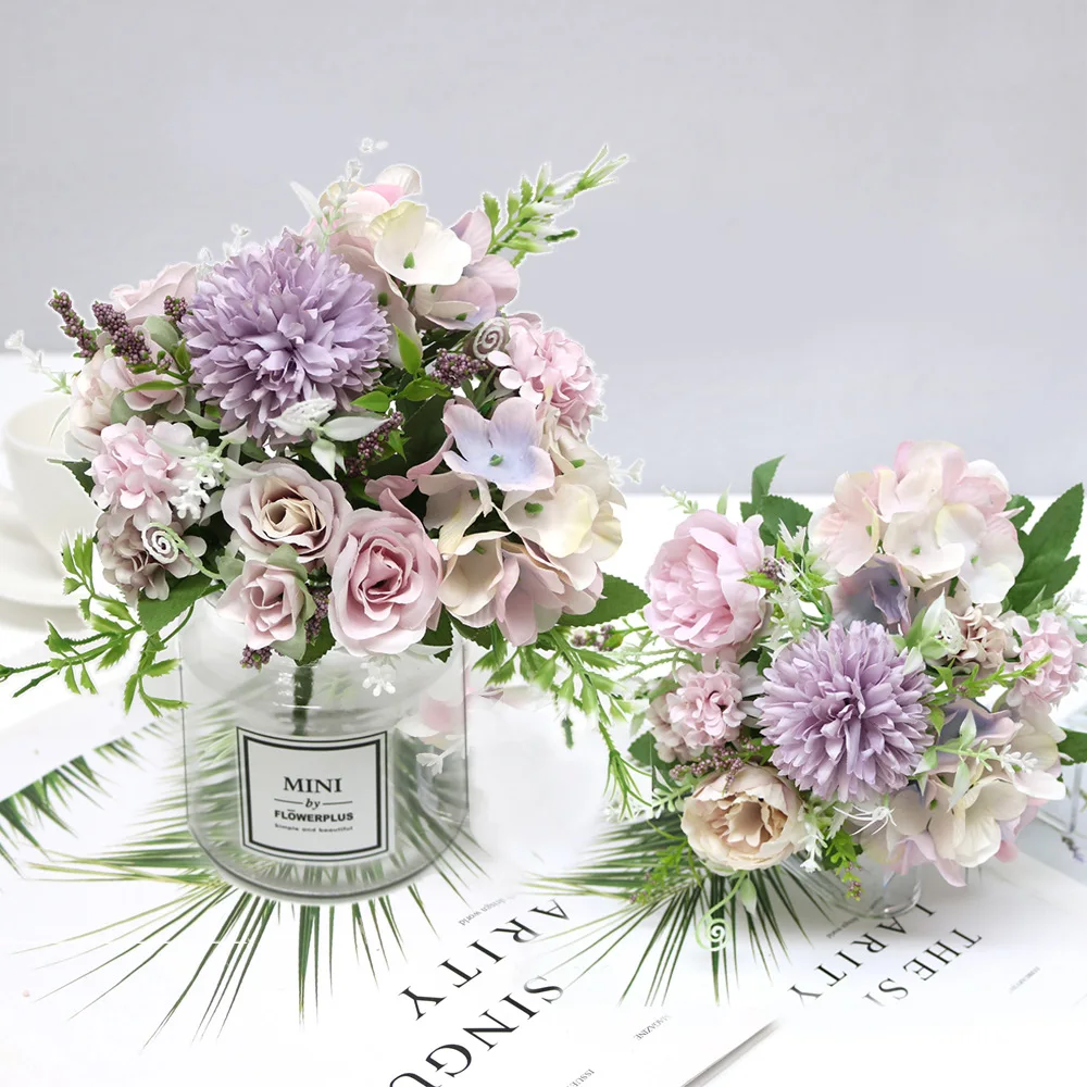 Искусственные цветы, шелковая Гортензия, искусственные розы камелии, цветы для свадебного букета, центральные части, цветочные композиции, украшения