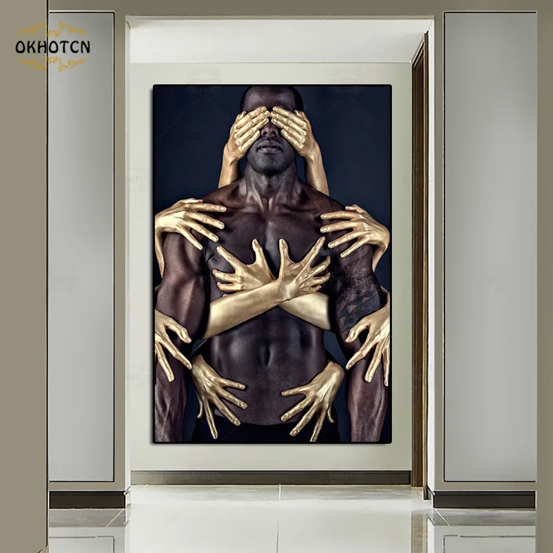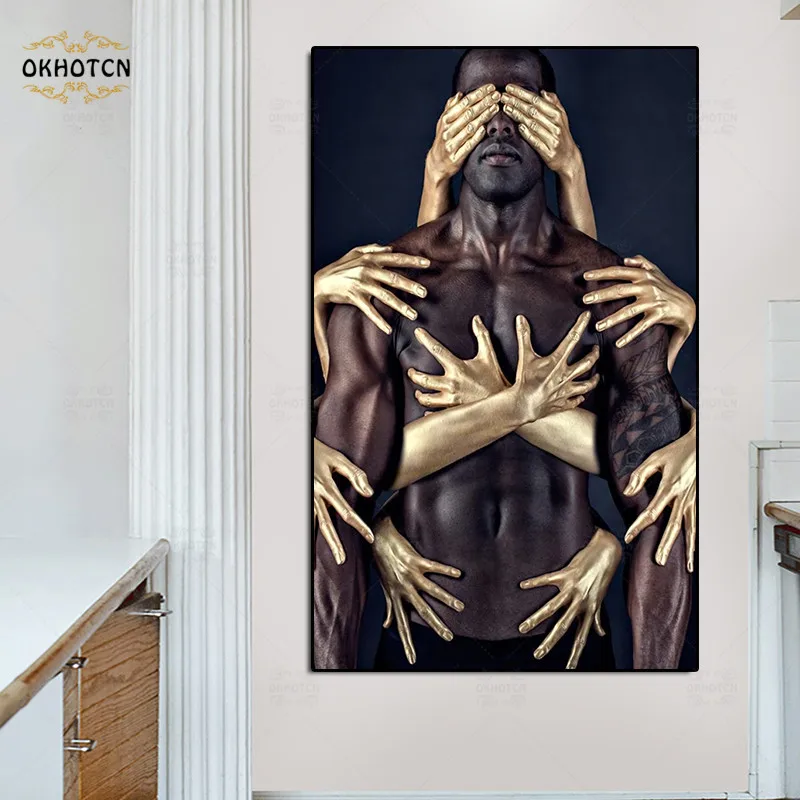 Плакаты и принты для мужчин и женщин, Африканское искусство, Черное золото, обнаженные объятия, холст, живопись, настенные художественные картины для украшения гостиной