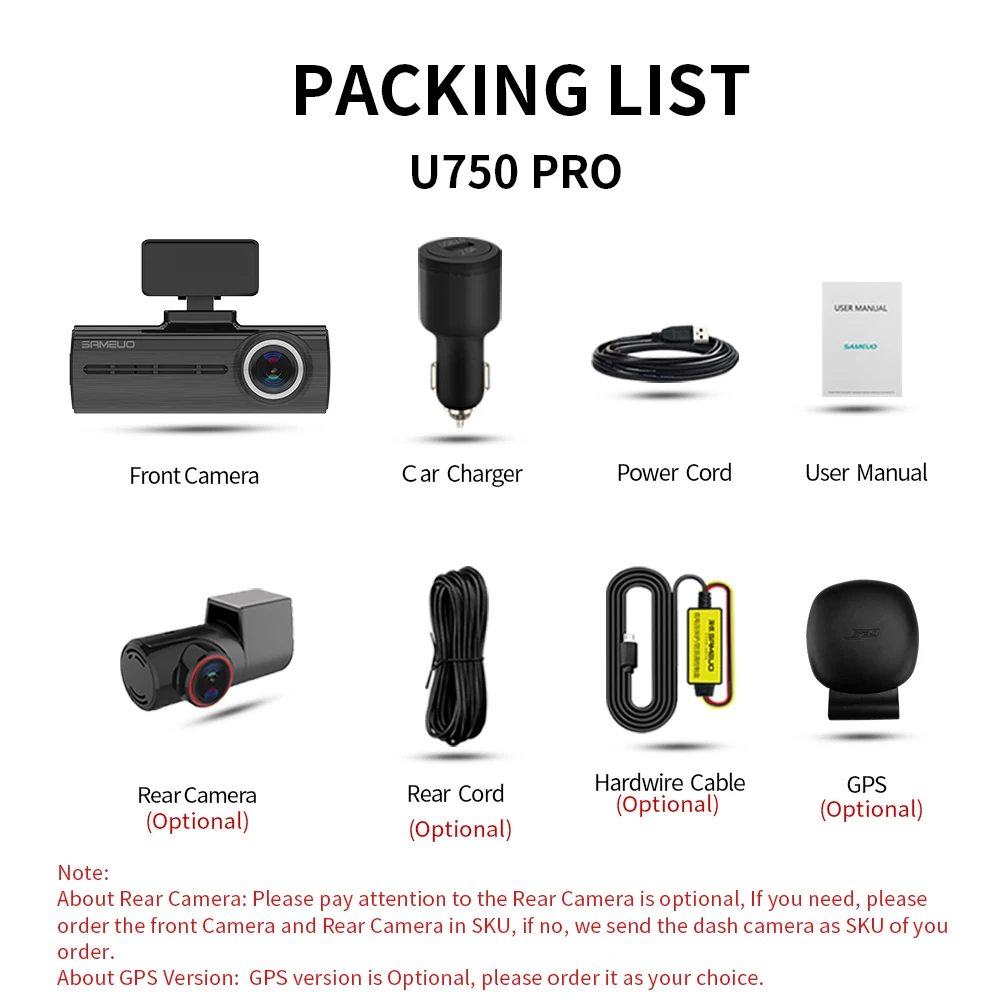 Sameuo U750 Pro видеорегистратор с двумя объективами, GPS dvr, видеорегистратор, WIFI, автомобильная камера, 1440P, Автомобильный видеорегистратор, 2k, видеорегистратор, 24H, парковочный монитор