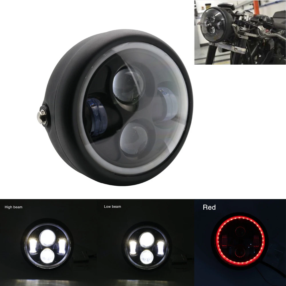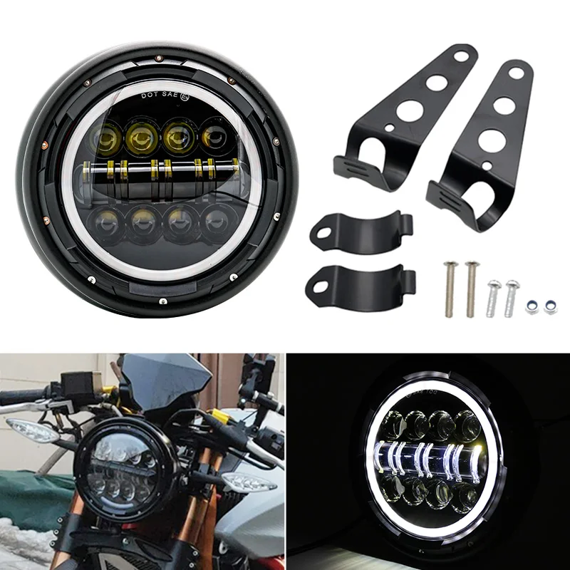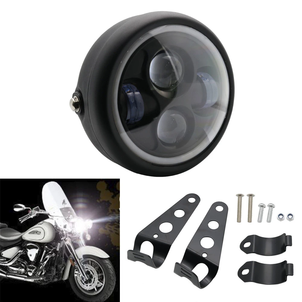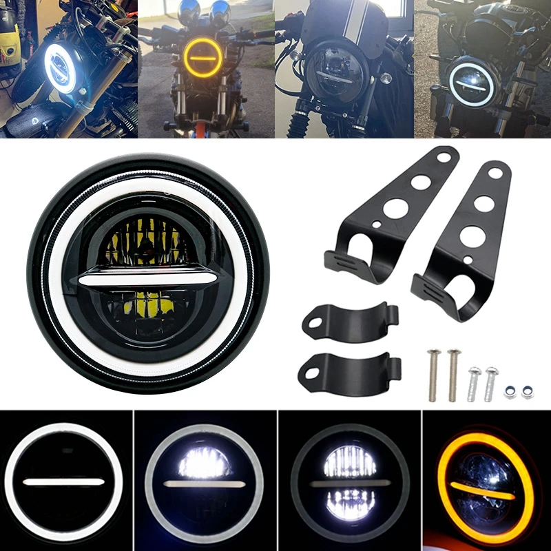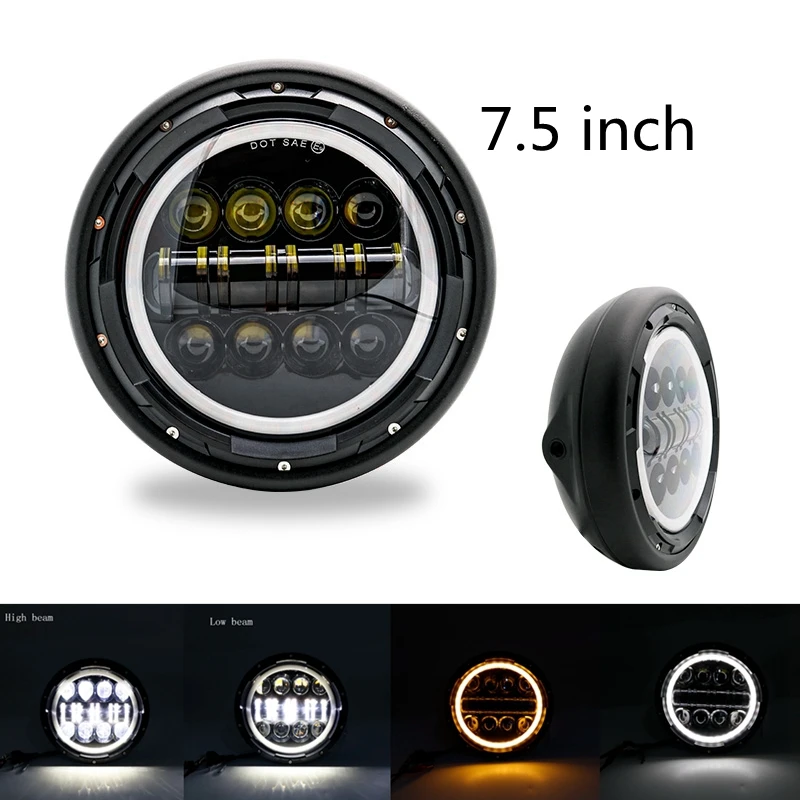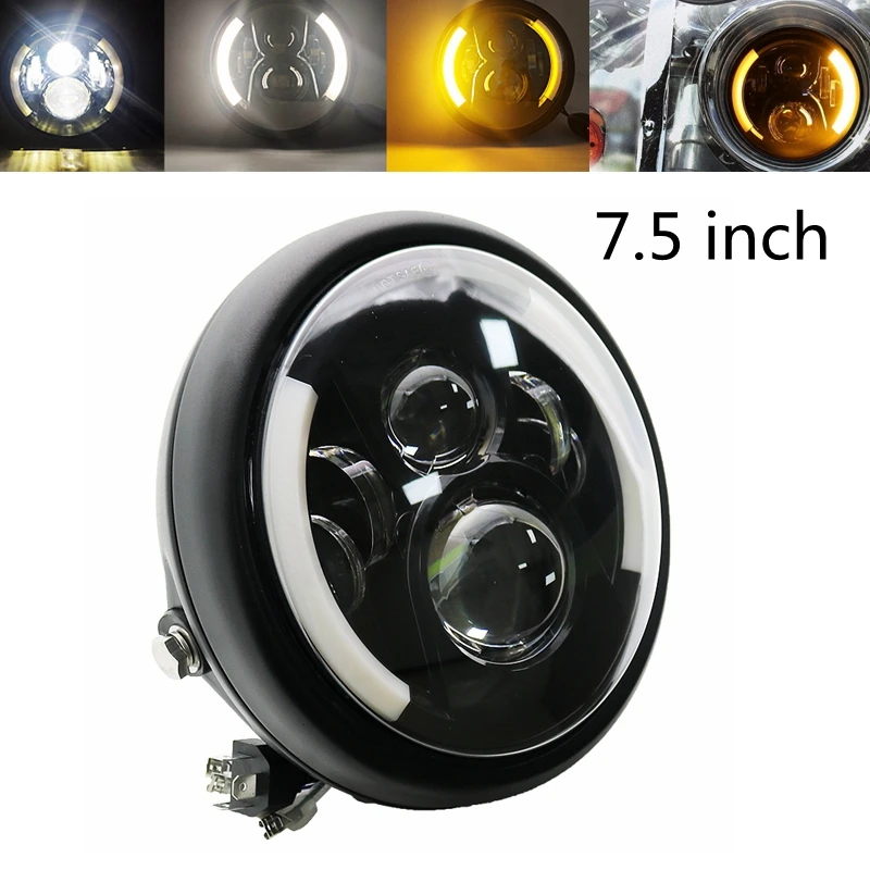 Светодиодная фара для мотоцикла 7,5 дюйма, передние фары 6,5 дюйма с кольцом ангела для Harley Sportster Cafe Racer Bobber Iron 883