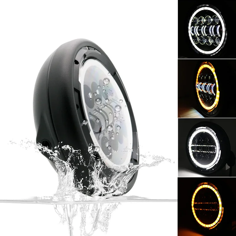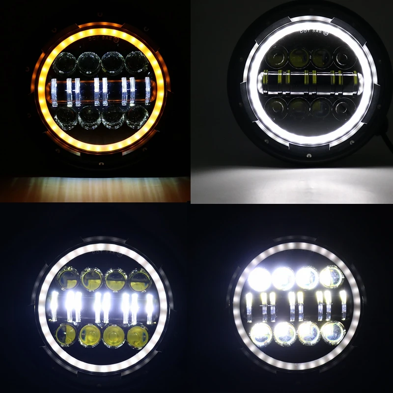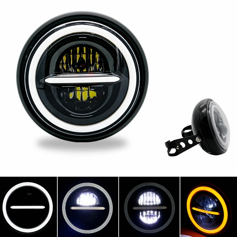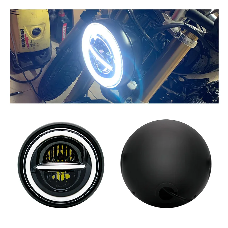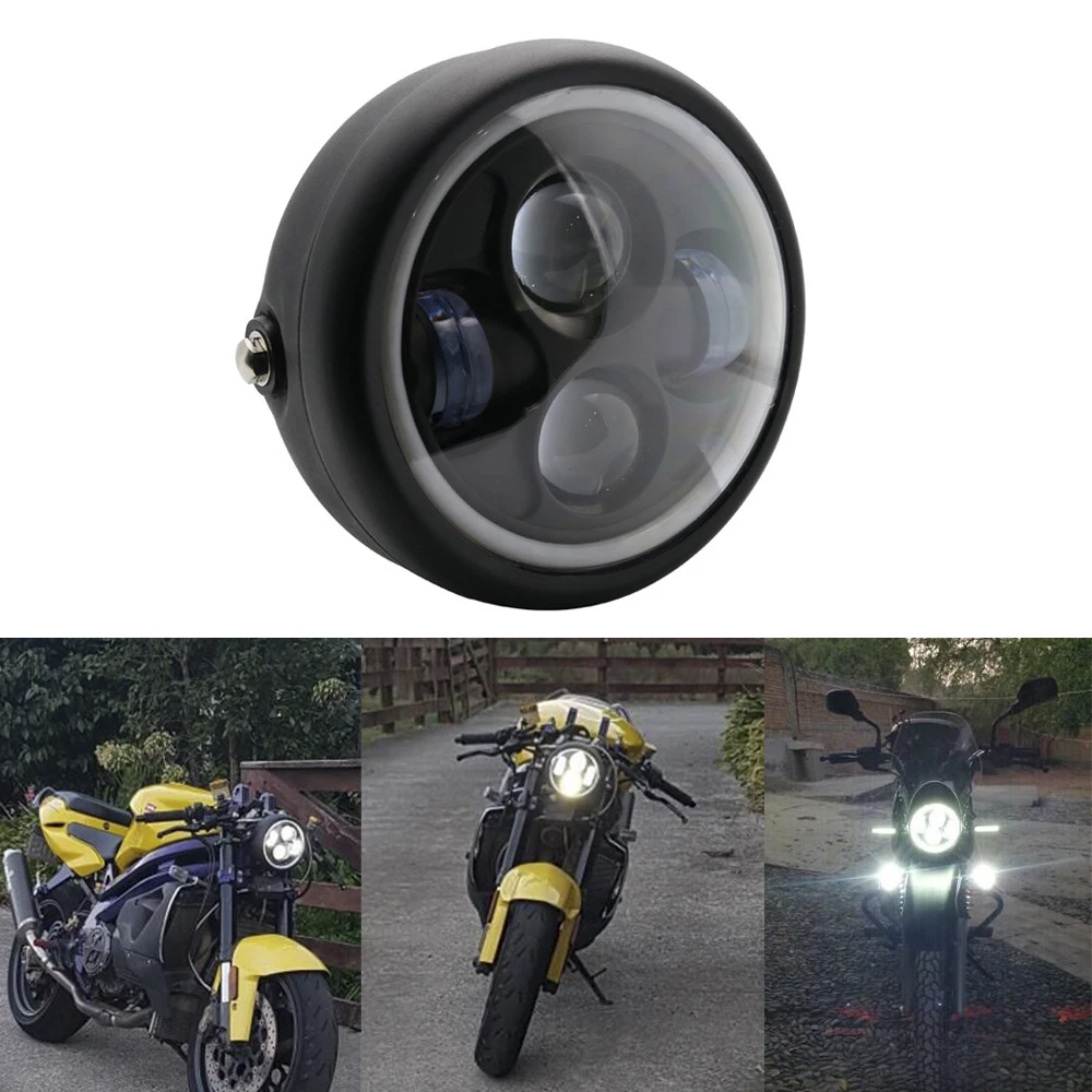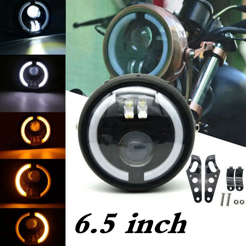 Светодиодная фара для мотоцикла 7,5 дюйма, передние фары 6,5 дюйма с кольцом ангела для Harley Sportster Cafe Racer Bobber Iron 883