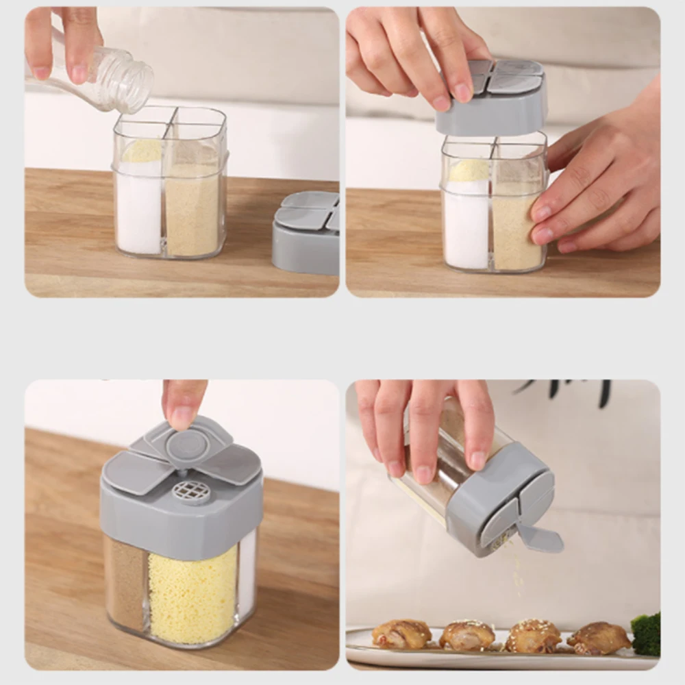 Пластиковый контейнер для хранения, контейнеры для приправ, с четырьмя отделениями