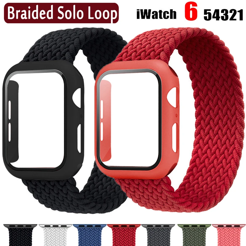 Плетеный ремешок Solo Loop для Apple Watch 44 мм 40 мм 42 мм 38 мм эластичный нейлоновый браслет + чехол для ПК iWatch series 6 5 4 3 se