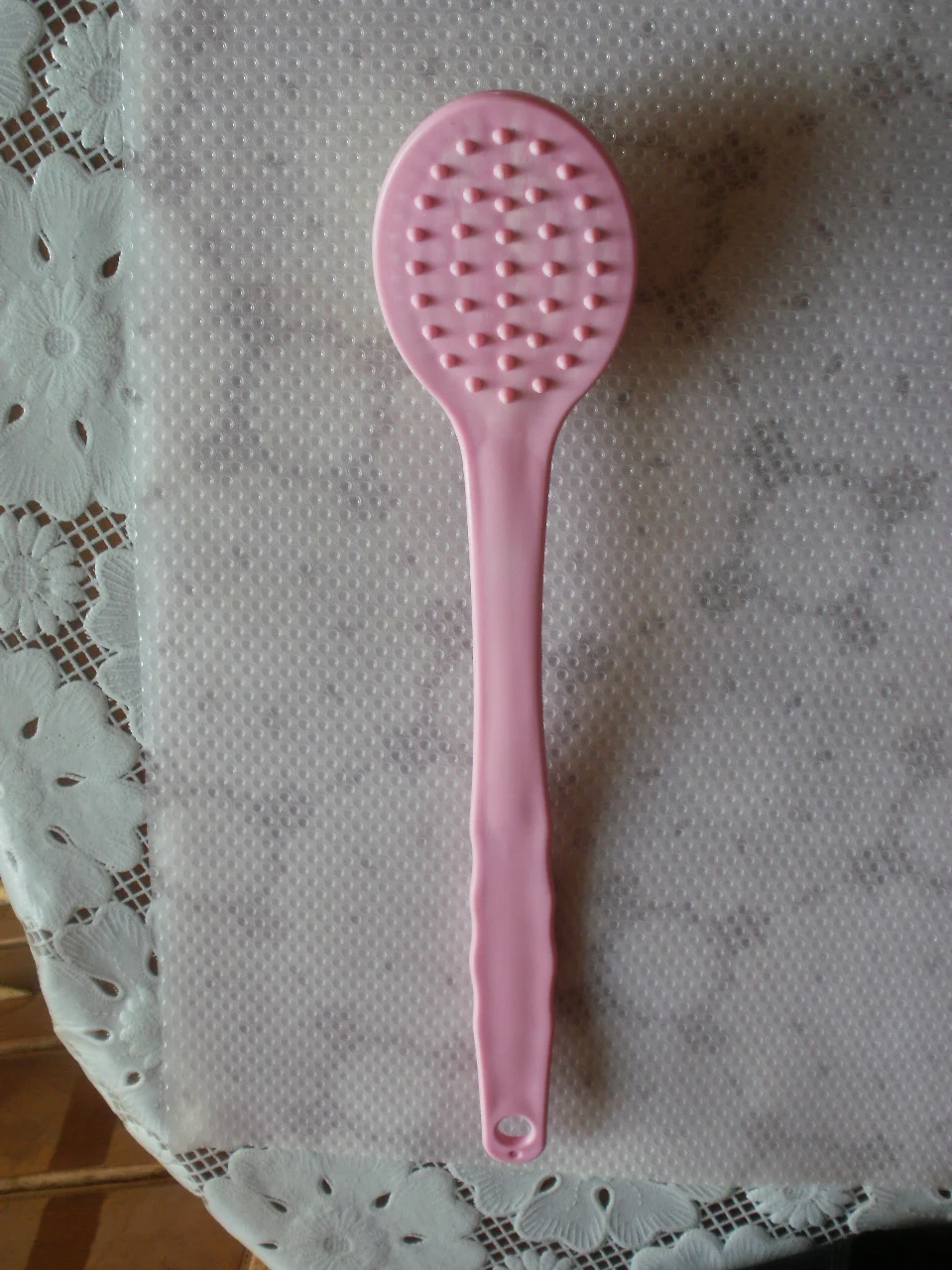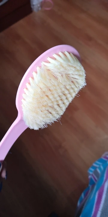 Щеточка удобная, ручка длинная. Спину мыть удобно)). Доставка быстрая. Упаковано простенько вспашет, но щетка дошла в целости и сохранности. Продавца рекомендую и товар тоже.