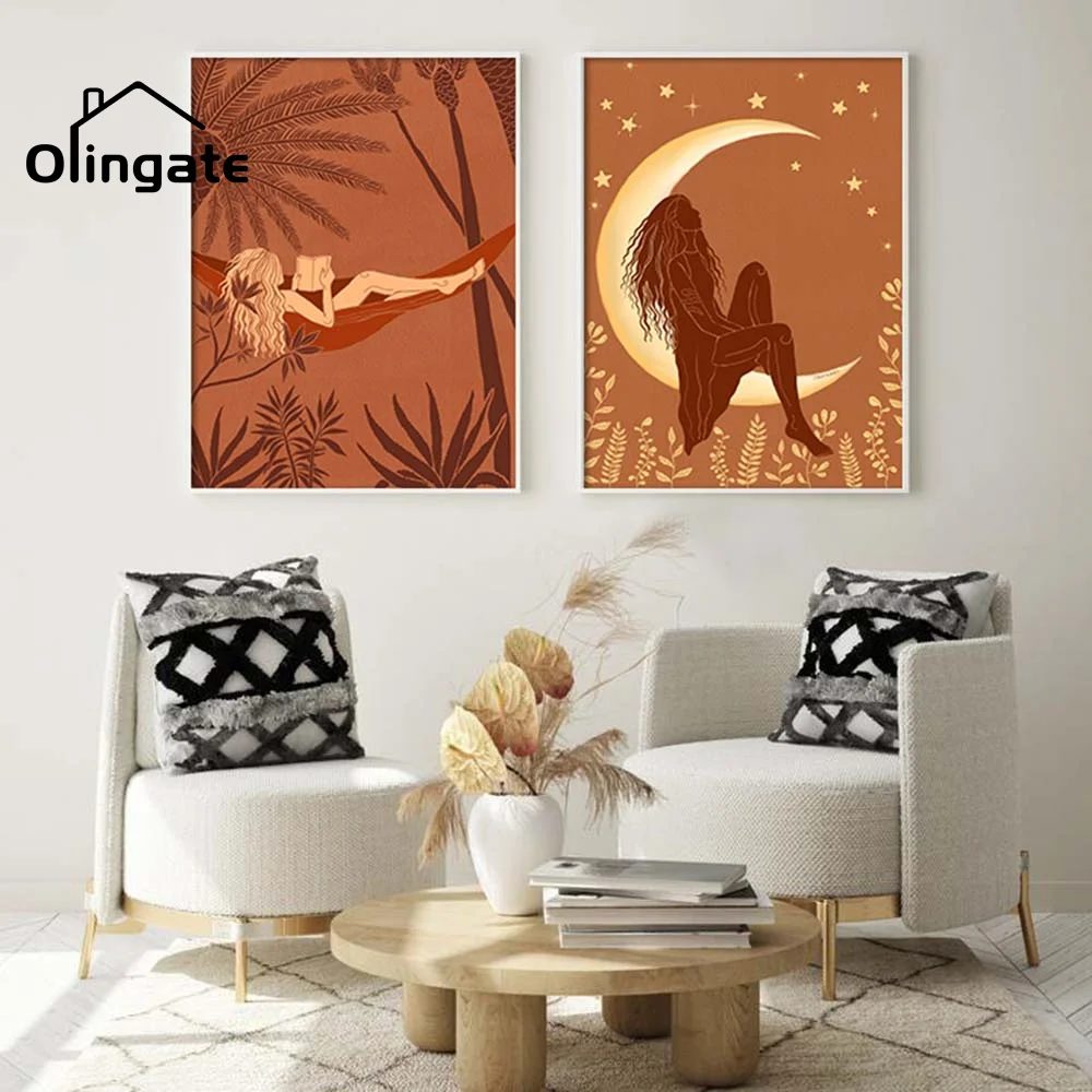 Винтажные религиозные иллюстрации, холщовые постеры, абстрактная Ретро девушка в Луне, одна штука, настенное искусство, Декор для дома, гостиной, гостиной