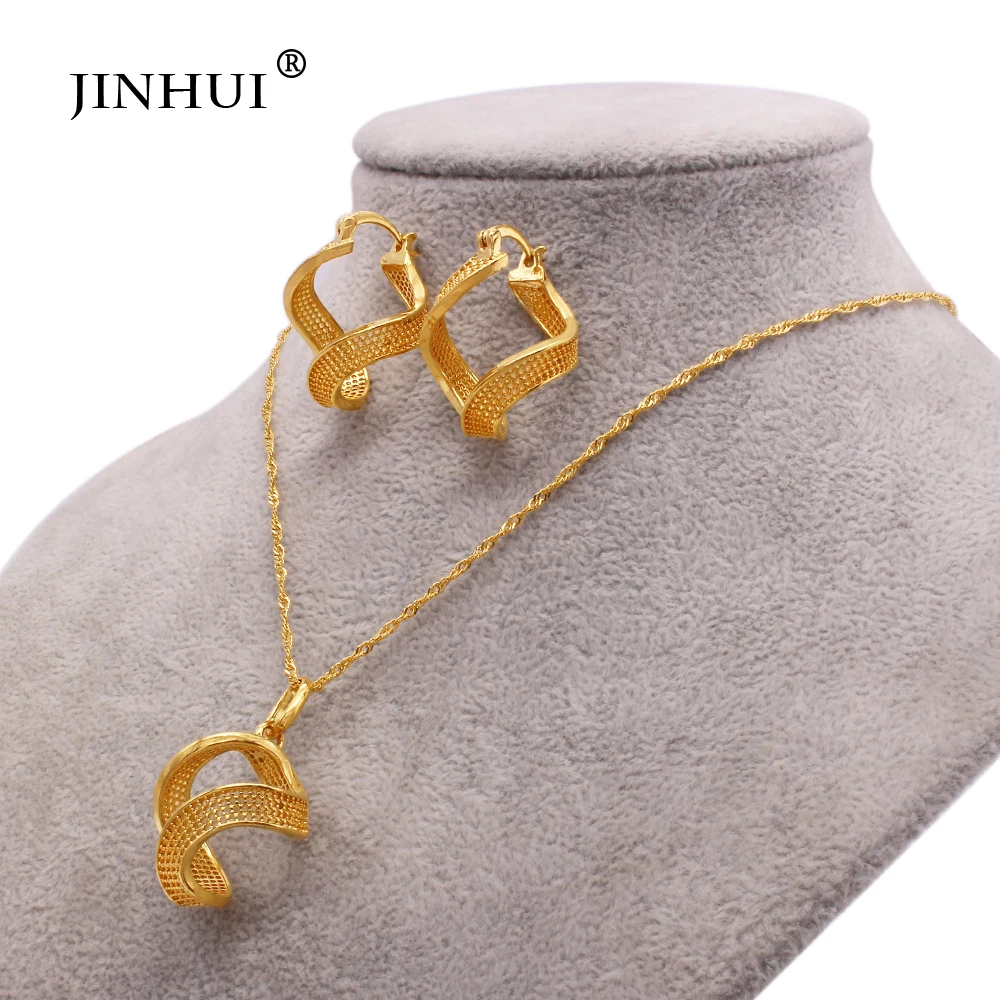 Роскошные позолоченные Ювелирные наборы из Дубая 18 карат для женщин ожерелье с подвеской серьги Гавайская свадебвечерние Свадебные ювелирные изделия подарочный набор