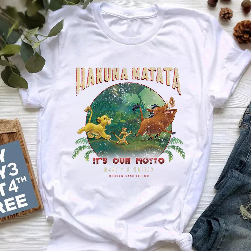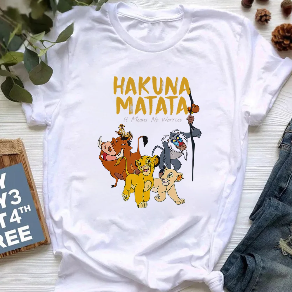 Свободная уличная одежда Харадзюку, футболки с надписью HAKUNA MATATA, модная футболка с принтом Диснея, Король Лев, женские повседневные футболки унисекс в стиле панк