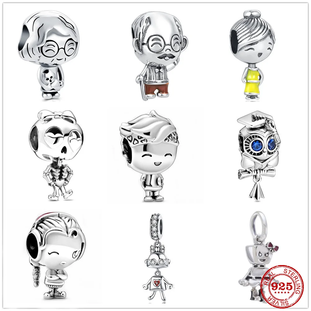 Новый дедушка бабушка мальчик с красивой девушкой совой кулон робот шарма бусины, соответственные Европейской Пандоре обаятельные Серебро 925 к оригинальному браслету, для женщин, сделай сам, ювелирное изделие