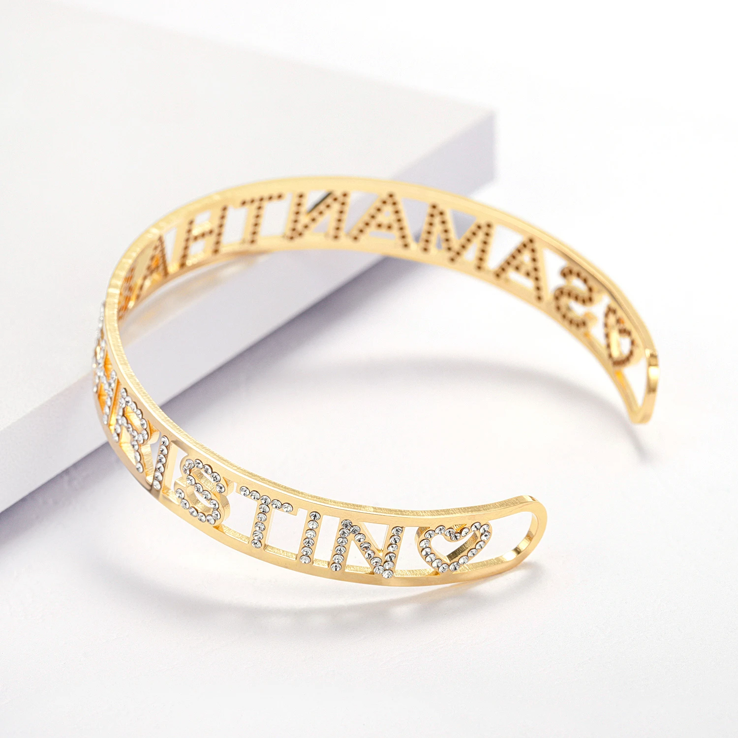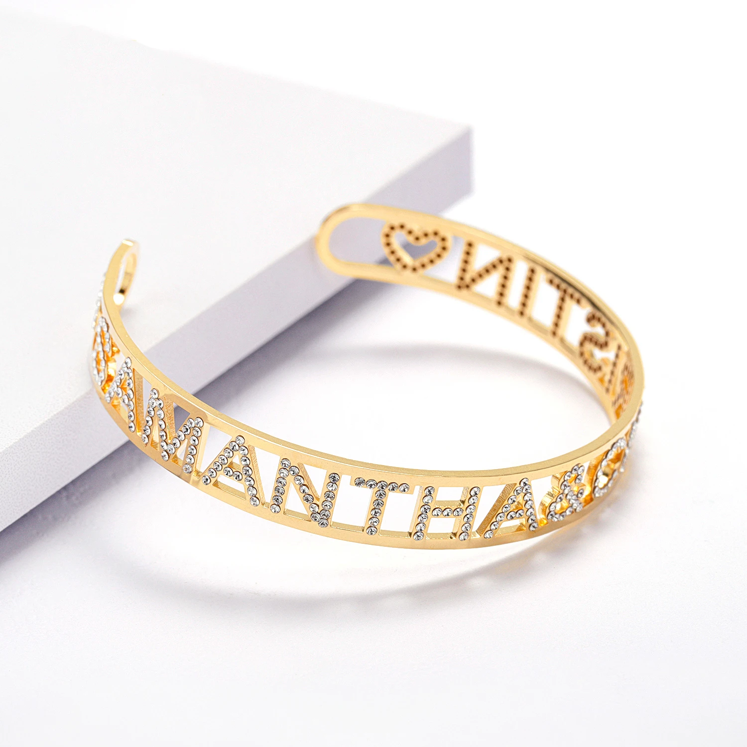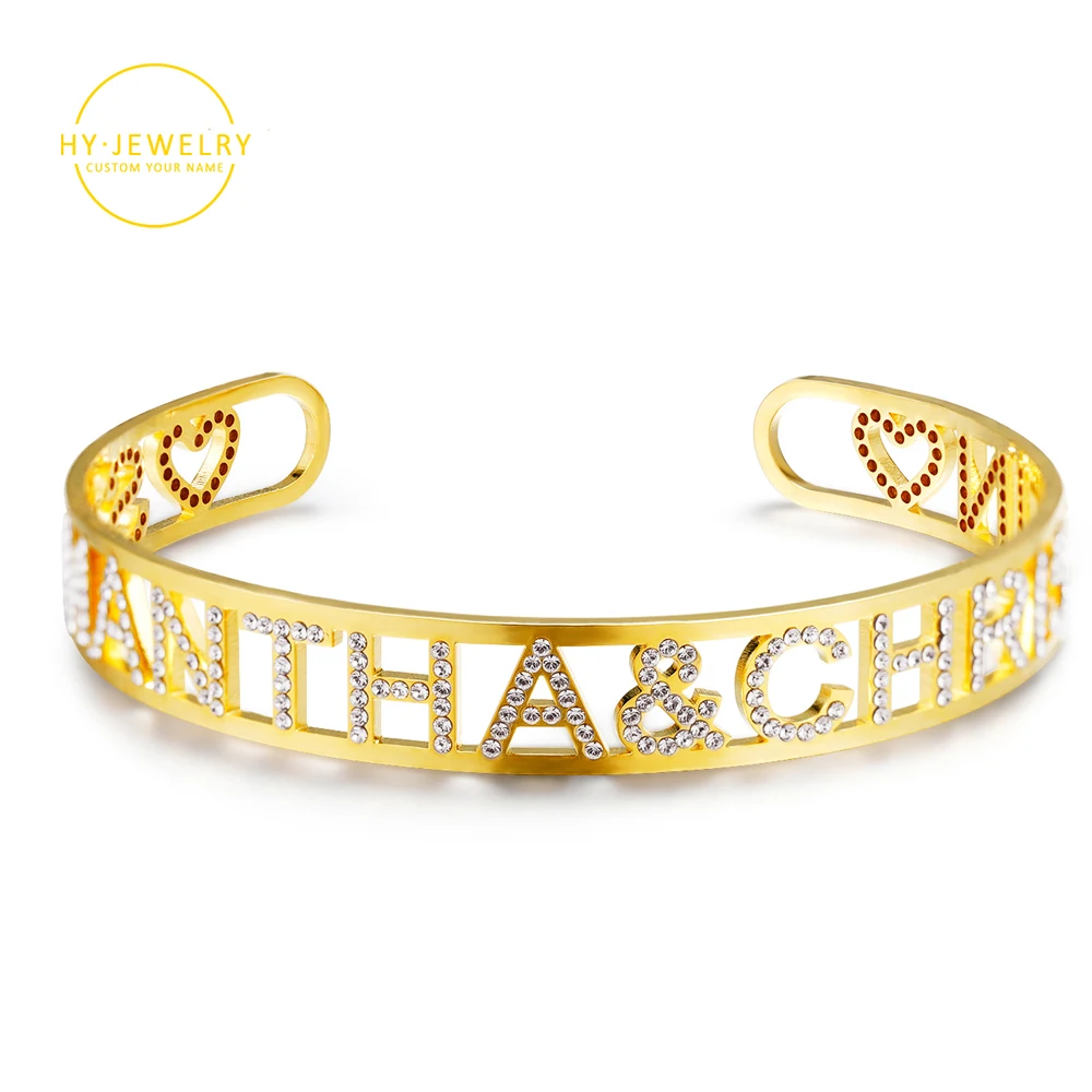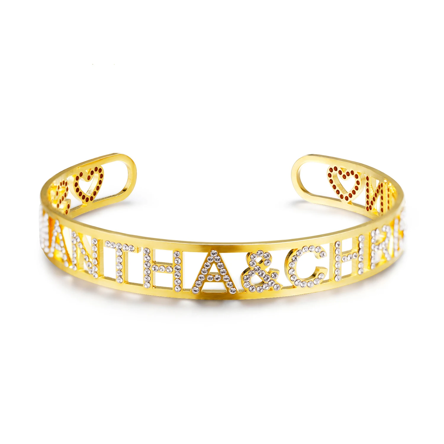 Пользовательское имя браслеты персонализированный Кристальный браслет для женщин Золотой табличка с именем из нержавеющей стали Письмо Браслеты Браслет-манжета регулируется