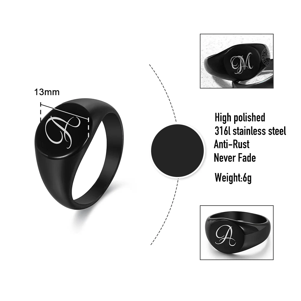 Персонализированные тяжелые A-Z кольцо с начальным штампом для мужч...
