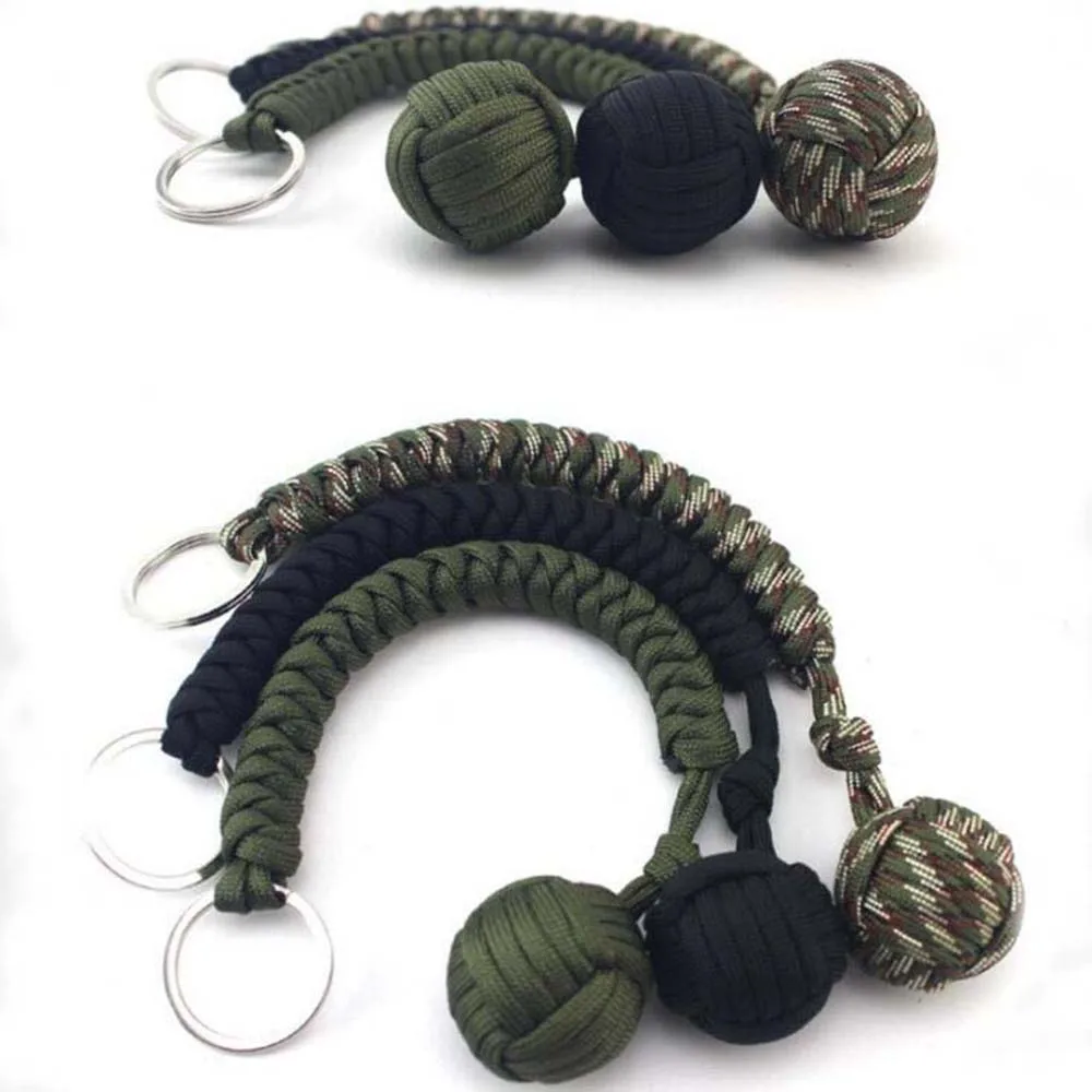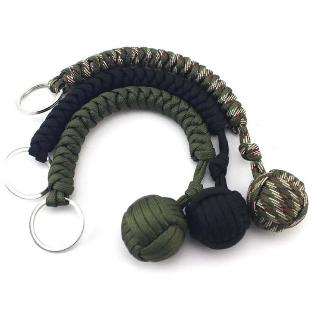Наружная цепочка для ключей для самообороны, аварийная защита для выживания, кулак обезьяны, стальной шарикоподшипник, парашют, ремешок