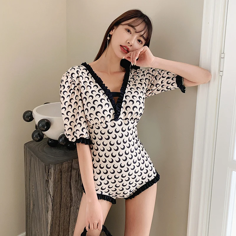Женский слитный купальник, винтажный летний пляжный костюм с мягкими чашечками и короткими рукавами, 2021