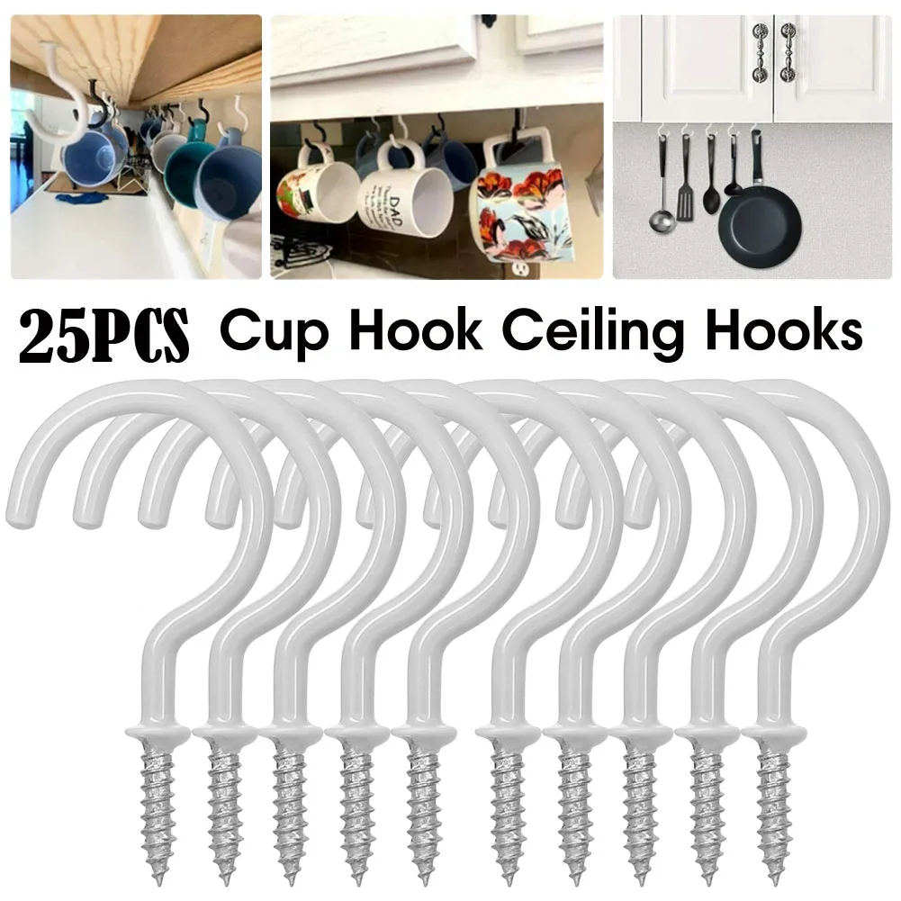 25 упаковок крючков для чашек, потолочные крючки, 2,8 дюйма, Finegood виниловое покрытие, винтовые потолочные крючки, вешалка для чашек, плечики, крючки для чашек