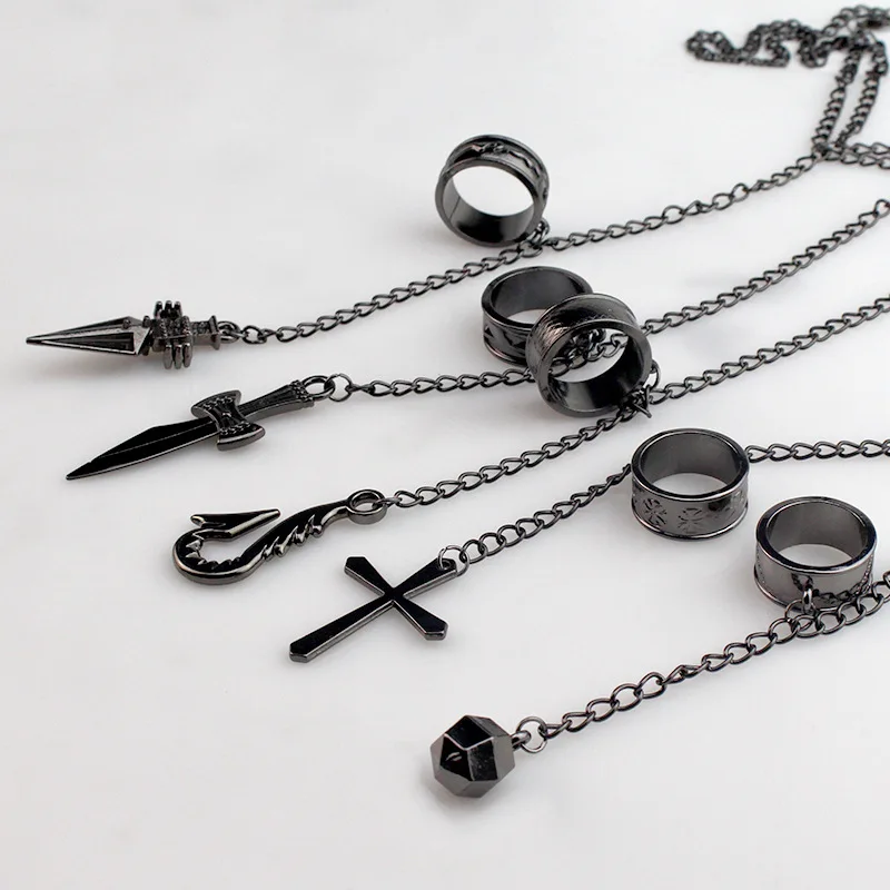 Аниме Hunter X Hunter Kurapika металлическое кольцо браслет Косплэй в стиле панк, в стиле хип-хоп Винтаж крест цепочка на палец кулон для