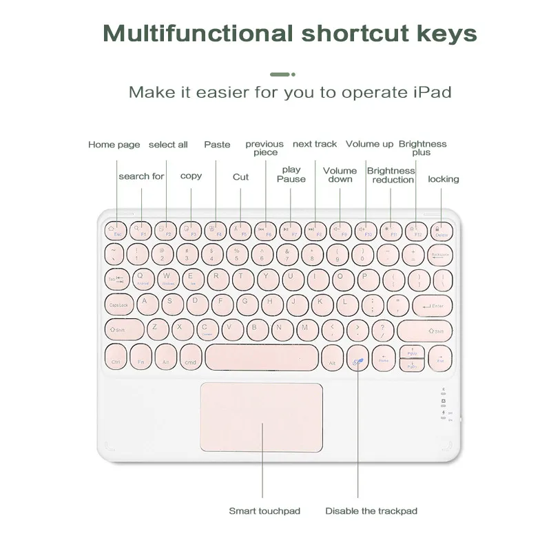 Беспроводная Bluetooth-клавиатура для планшета с сенсорной панелью, перезаряжаемая мини-клавиатура с круглой клавиатурой для IPad, IPhone, Samsung, Xiaomi, Huawei