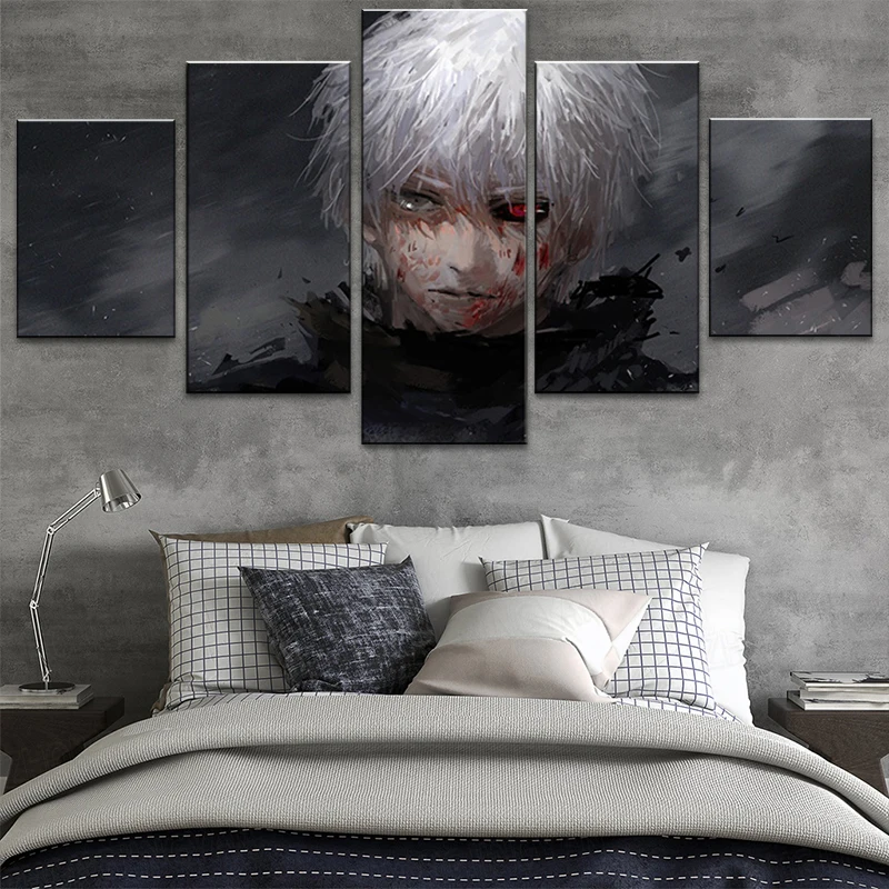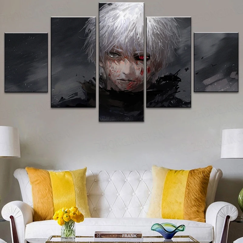 Картина на холсте, домашний декор, 5 панелей, аниме Токийский Гуль Кен канеки, настенное искусство, модульные картины, плакат, рамка для гостиной