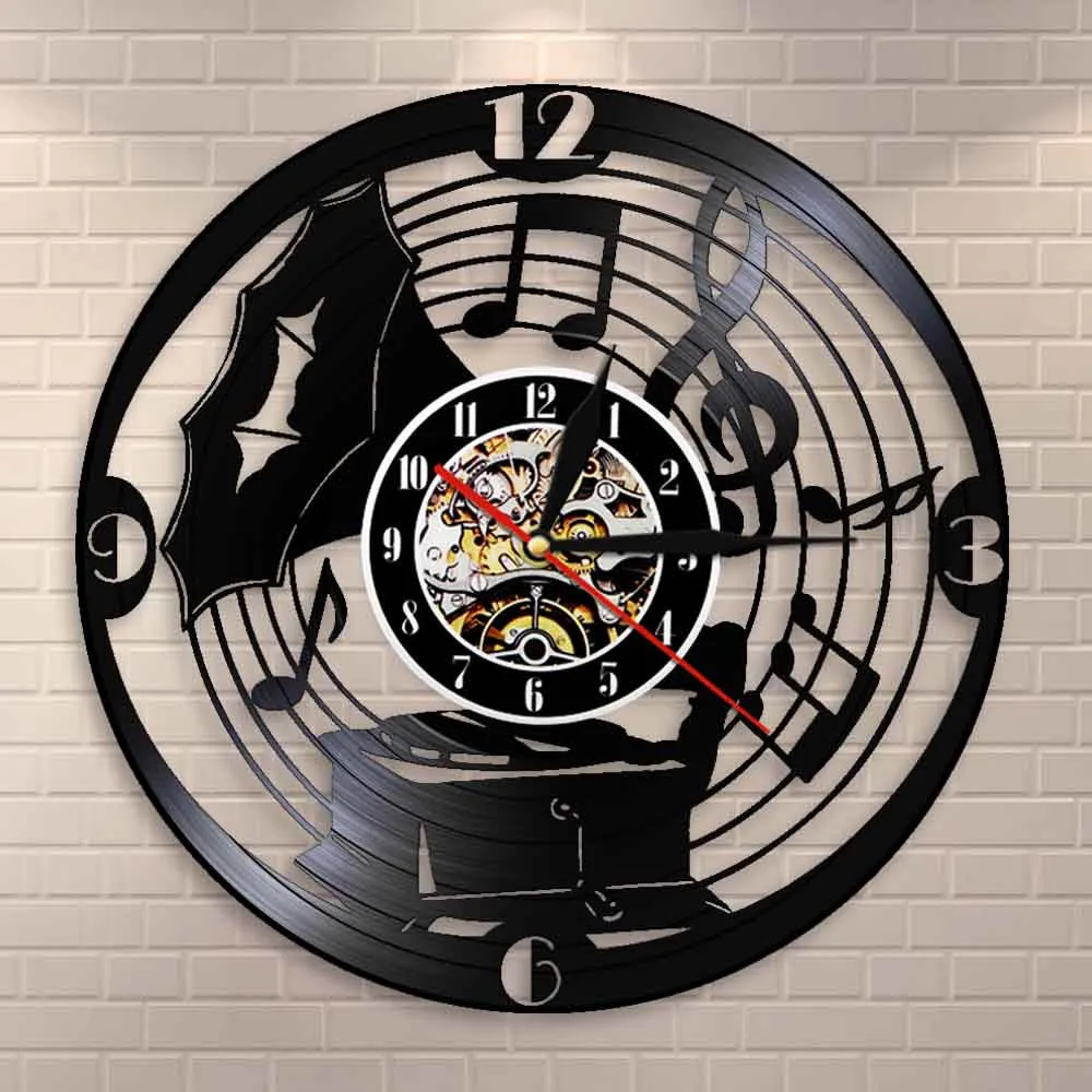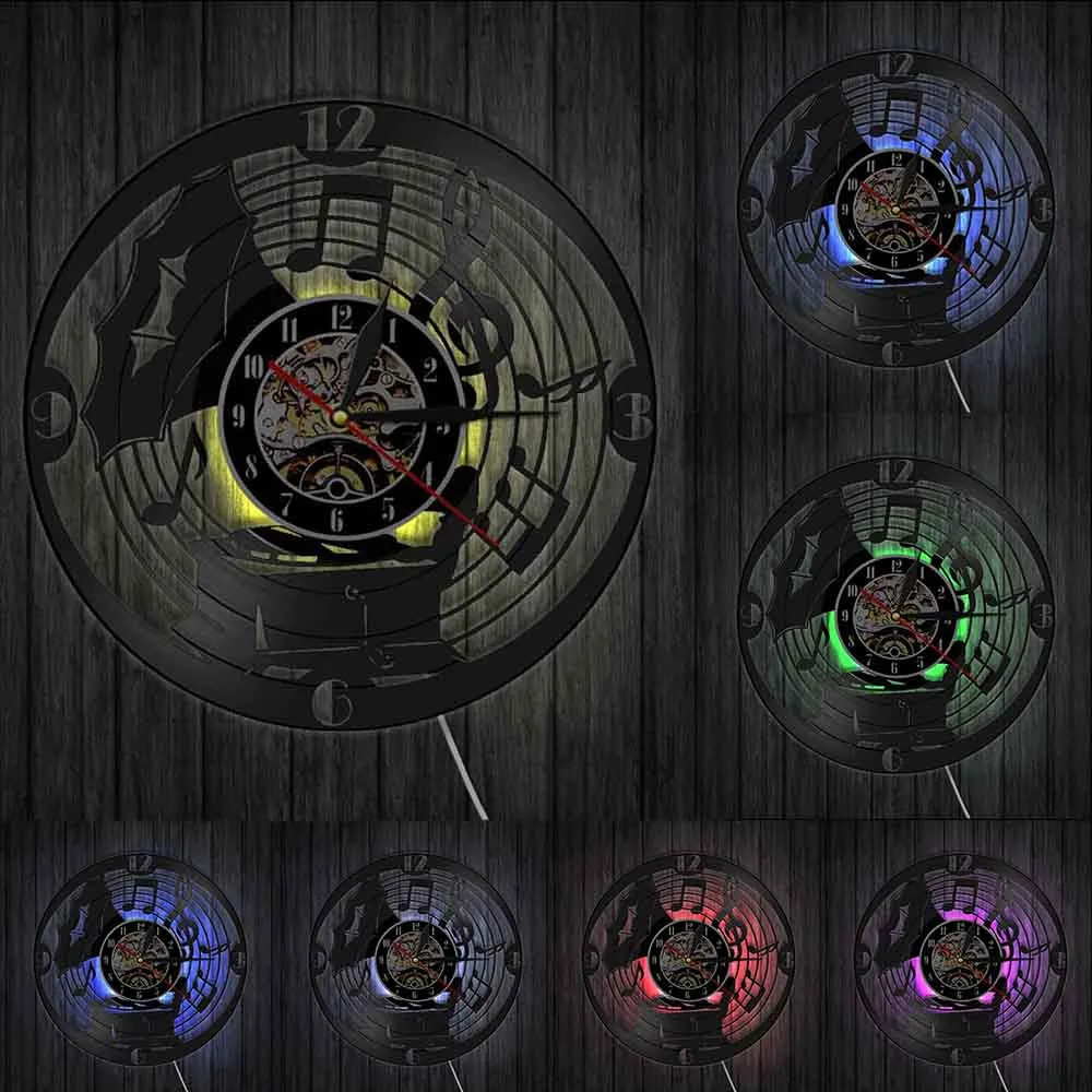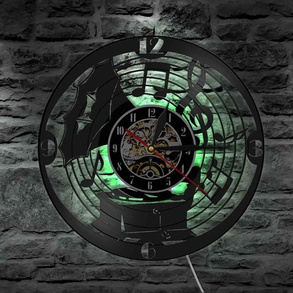 Граммофонный дизайн, светодиодная лампа, музыкальная комната, студия, мульти-ноты, цветные ночные светильники, виниловая пластина LP, настенные часы, часы Duvar Saati