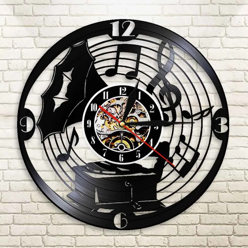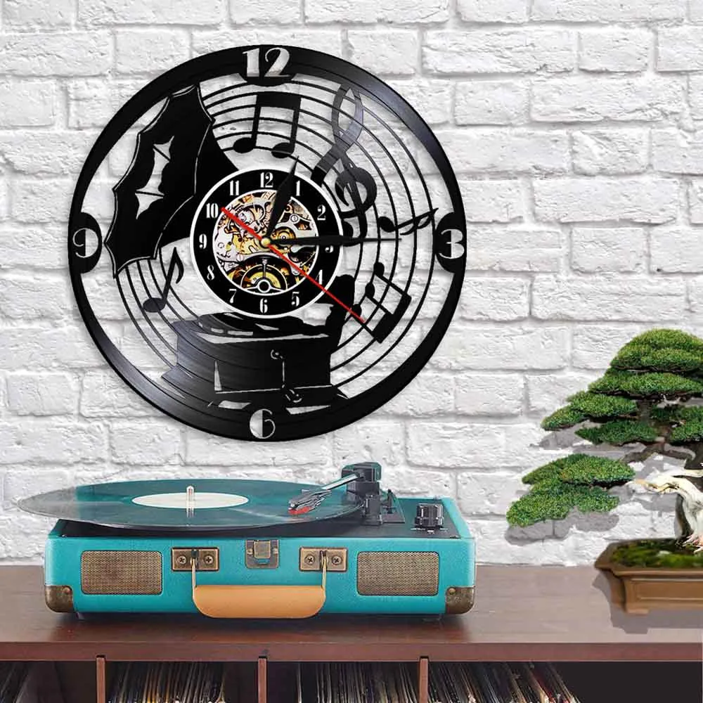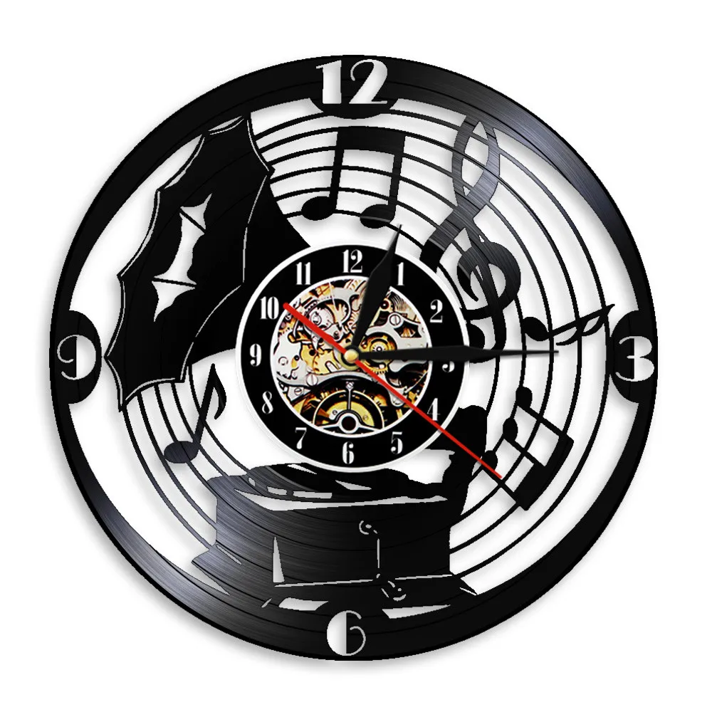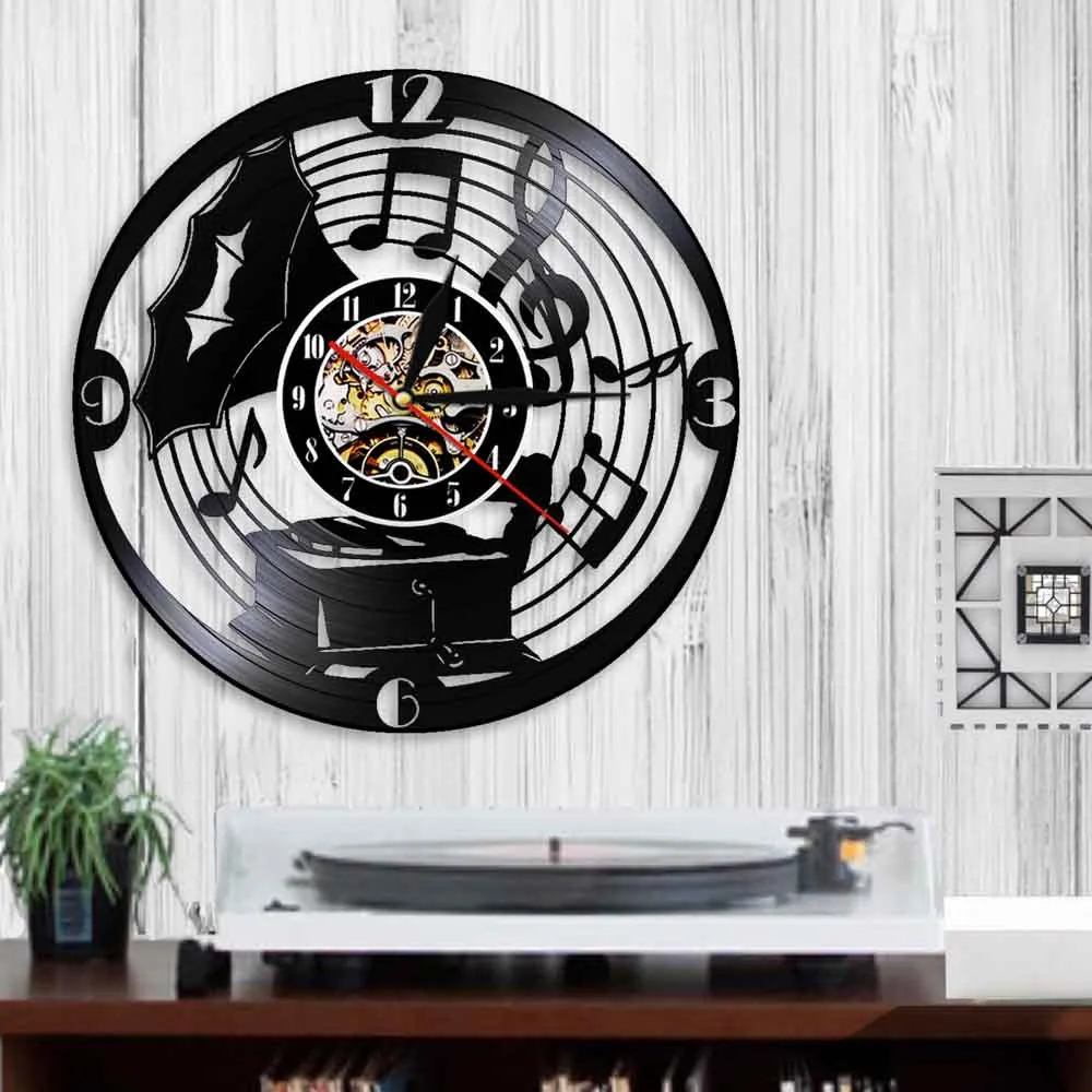 Граммофонный дизайн, светодиодная лампа, музыкальная комната, студия, мульти-ноты, цветные ночные светильники, виниловая пластина LP, настенные часы, часы Duvar Saati