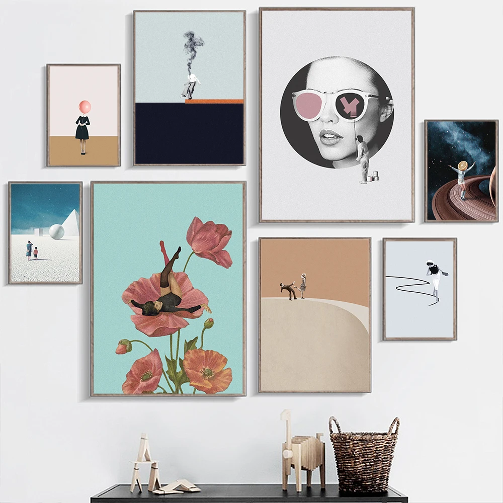 Модные абстрактные картины на холсте с изображением космоса для девочек, настенный художественный постер и печать, винтажные картины для гостиной, украшение для дома