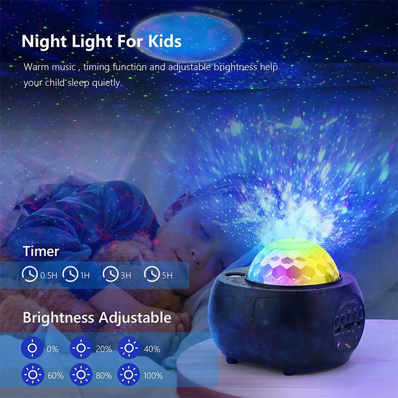 Эта Звездная машина очень забавна. Он освещает всю комнату веселой звездной ночью. Он может переключать цвета и дизайн. Яркость может регулироваться вверх или вниз. Мне нравится дизайн и качество этой машины. Я очень доволен этой покупкой.