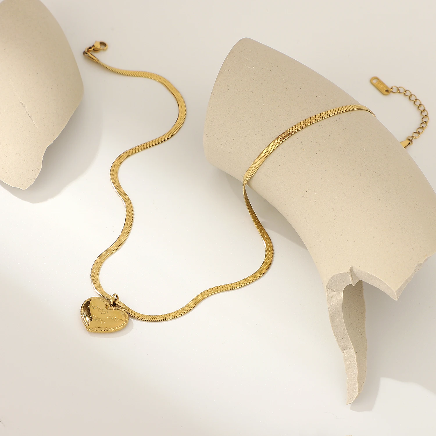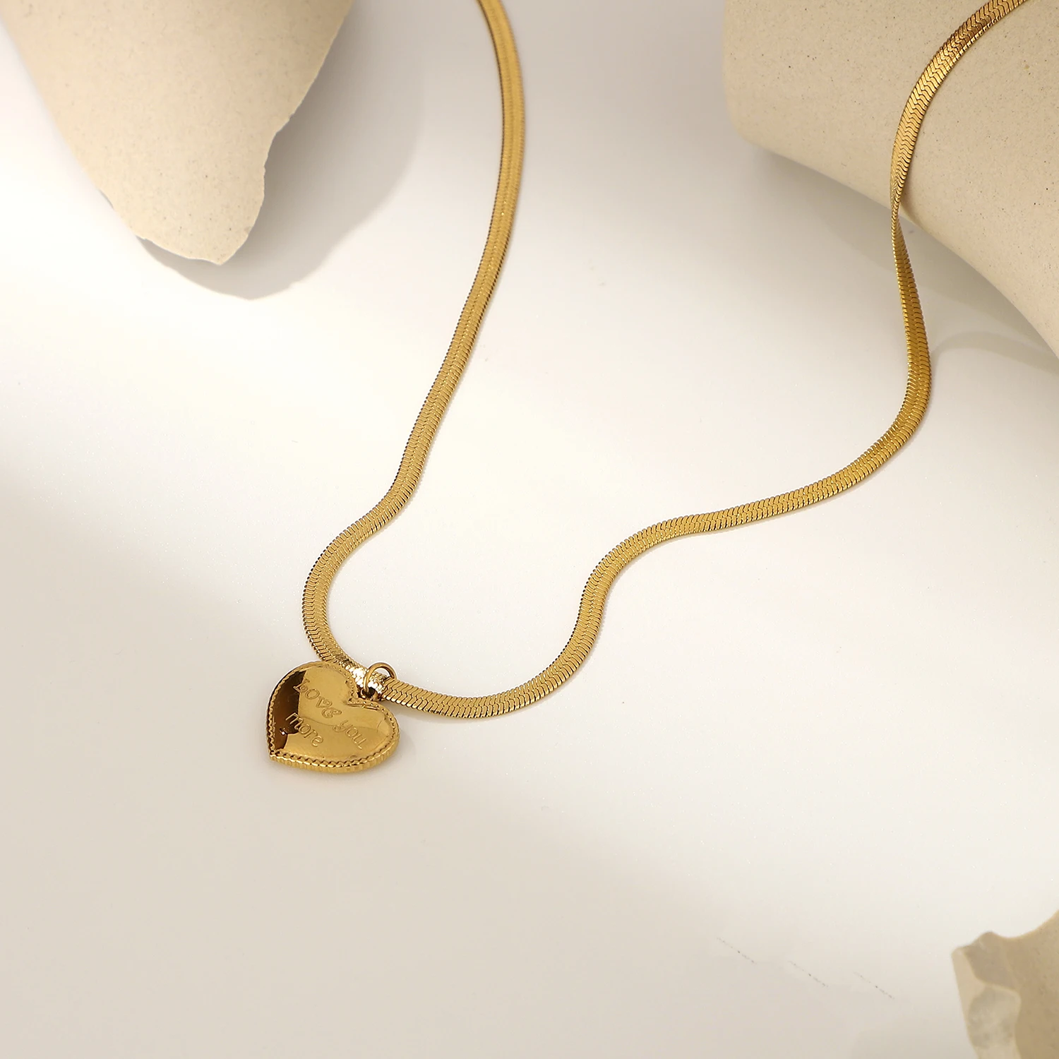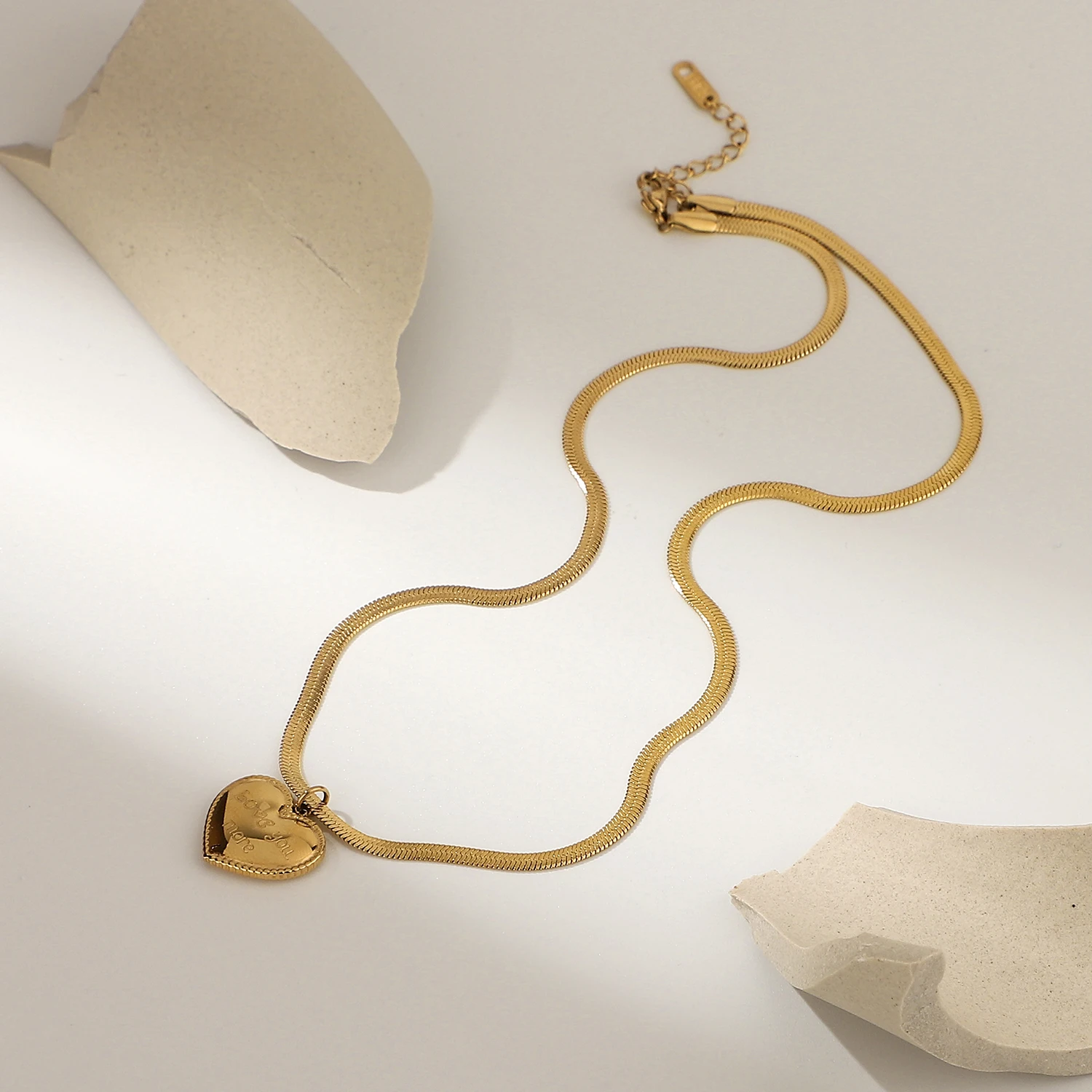 Нержавеющая сталь цепочка из змеиных костей любящее сердце кулон для женщин Love You More я никогда не буду любить тебя колье-чокер Новая модная Высококачественная Ювелирная