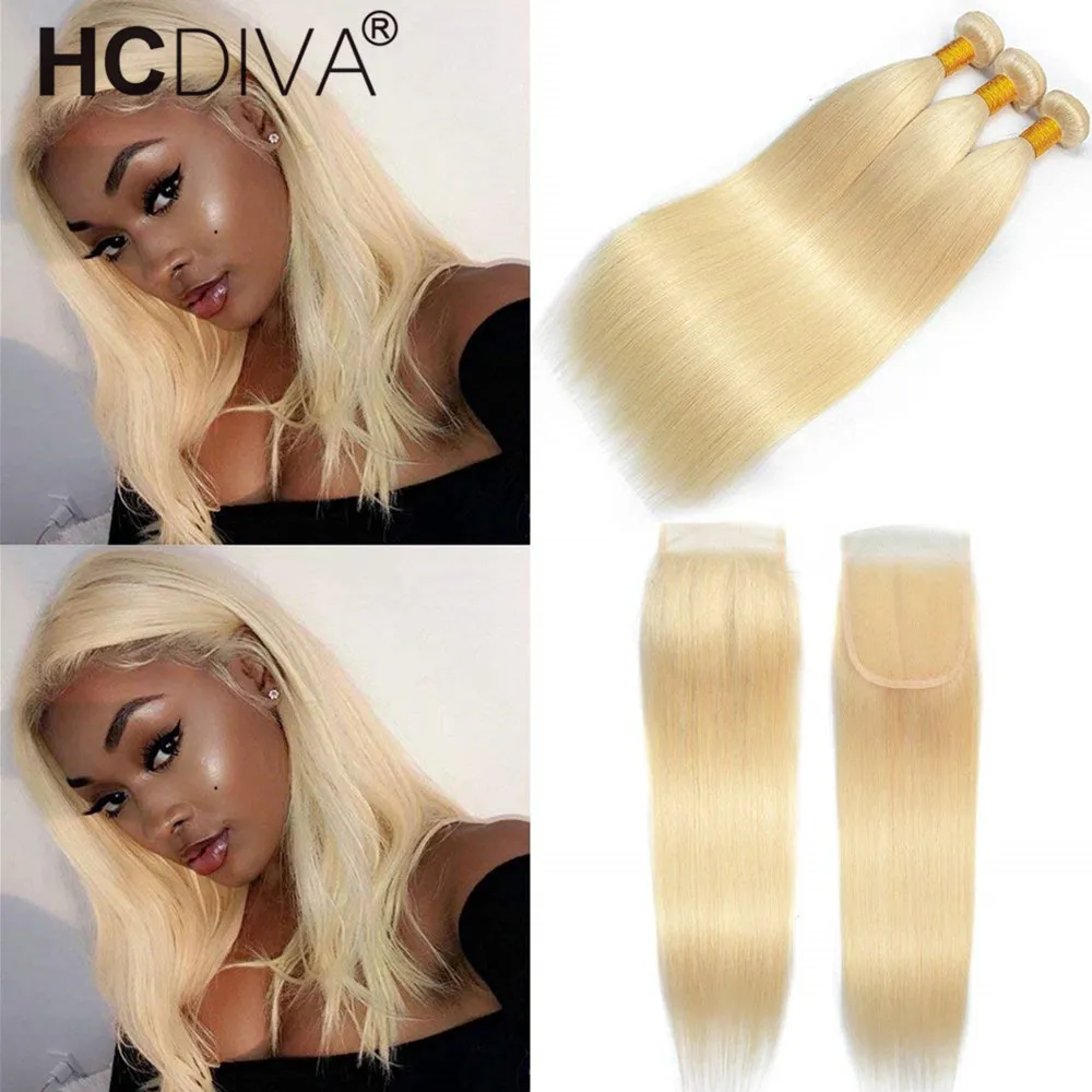 613 бразильские прямые человеческие волосы пряди с закрытием 613 Мё...
