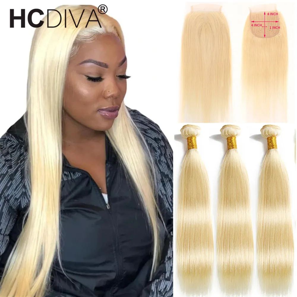 Пряди светлых прямых волос с застежкой, пряди натуральных малазийских волос Реми с застежкой на шнуровке 4x4 с застежкой из детских волос, 613