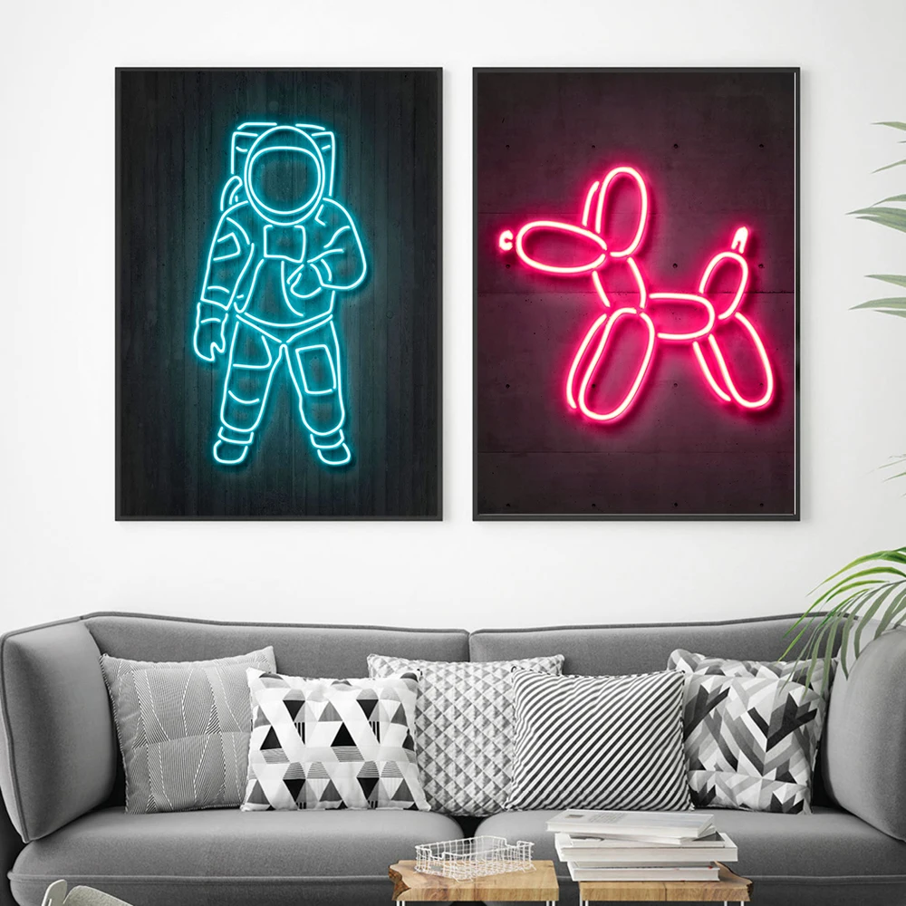 Настенное художественное полотно домашний декор астронавт деньги Дождь картина HD Печать неоновые огни современные плакаты Куадрос Модульная картина гостиная