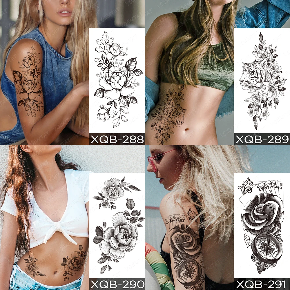 Водонепроницаемая Временная тату-наклейка Тигр Лотос Татто кран лисица линия цветок роза Слон боди арт рука Поддельные рукава тату для женщин