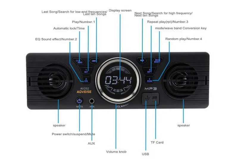 Автомагнитола AV252, 1 Din, с 2 встроенными USBSD-динамиками, TF-ка...