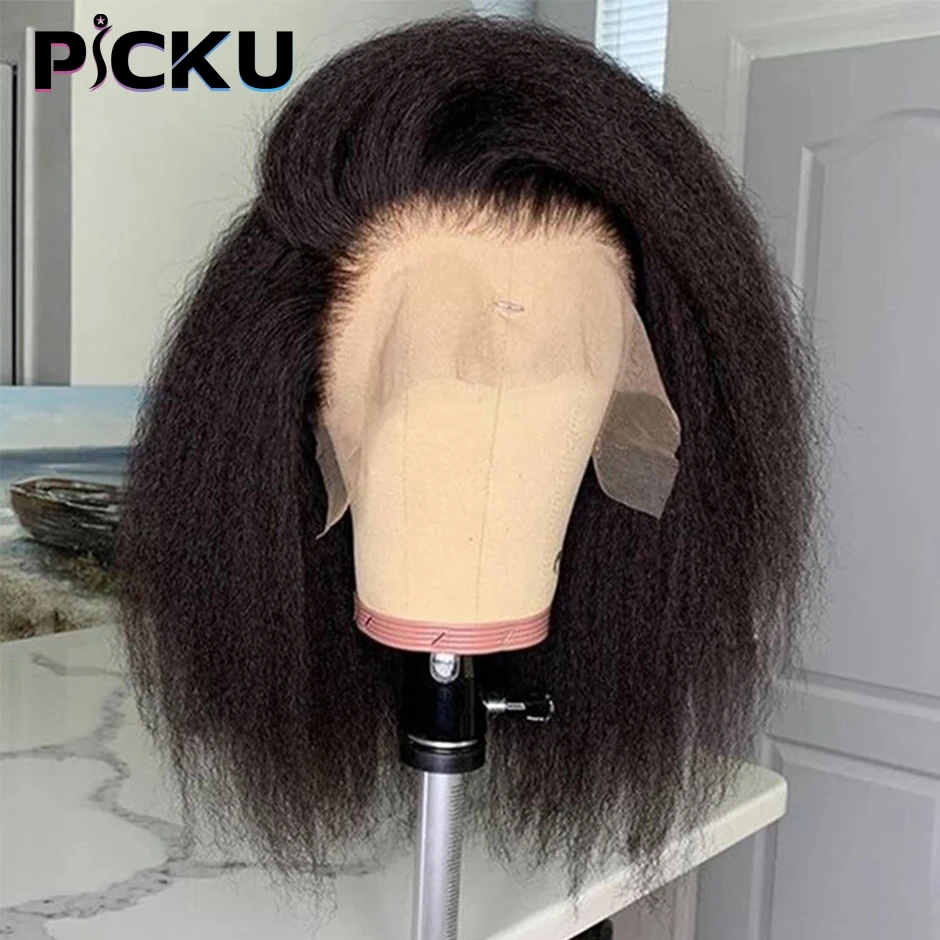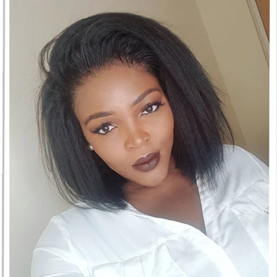 Кудрявые прямые парики 4x4 кружева закрытие парик для Для женщин бразильские Яки Синтетические волосы на кружеве парики предварительно вырезанные человеческие волосы для детей от 8 до 16 дюймов