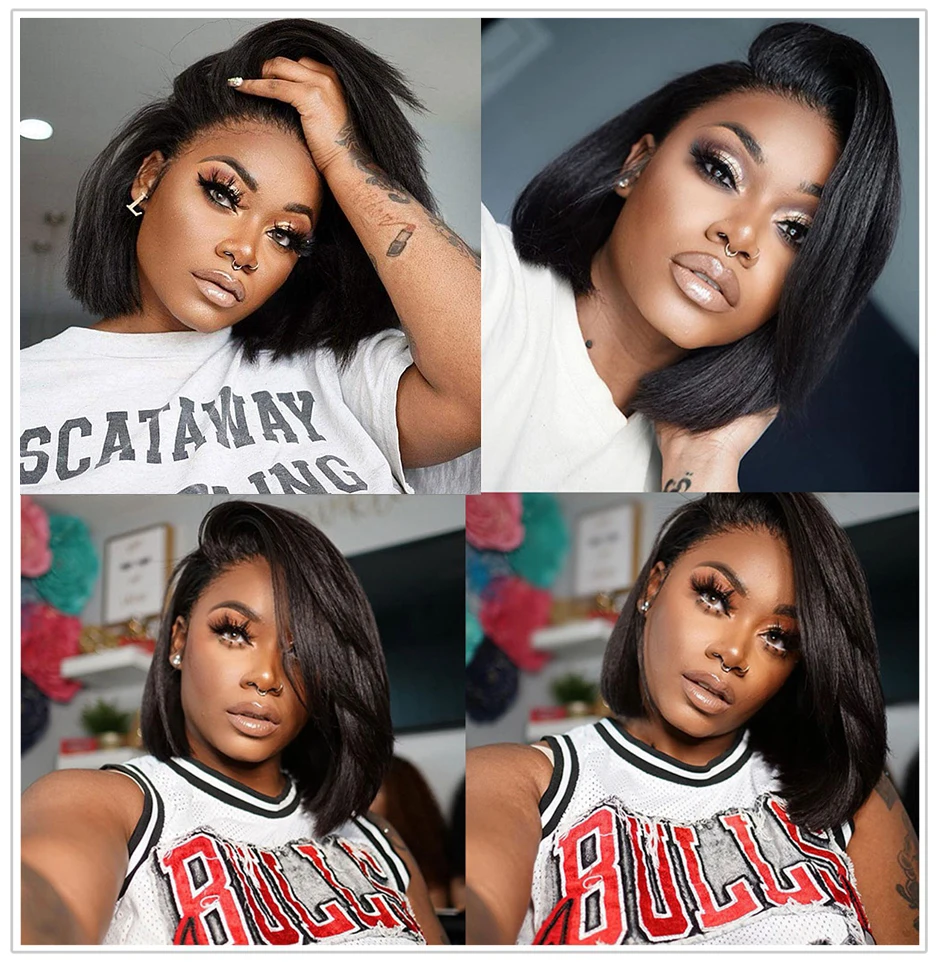 Короткий парик Боб, парики из человеческих волос на сетке спереди д...