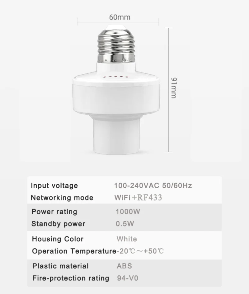 【Поддержка голосового контроллера 】 переключатель совместим с Alexa и Google Home Assistant, что позволяет использовать Голосовое управление smart lamp holder для включения/выключения.