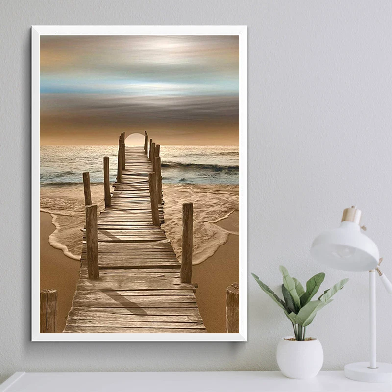 Деревянный мост, соединяющий море, холст, картины, современные плакаты с видом на море и печать, Настенная картина для гостиной, украшение для дома
