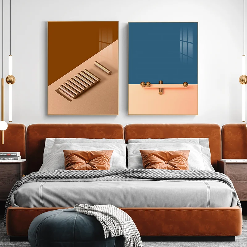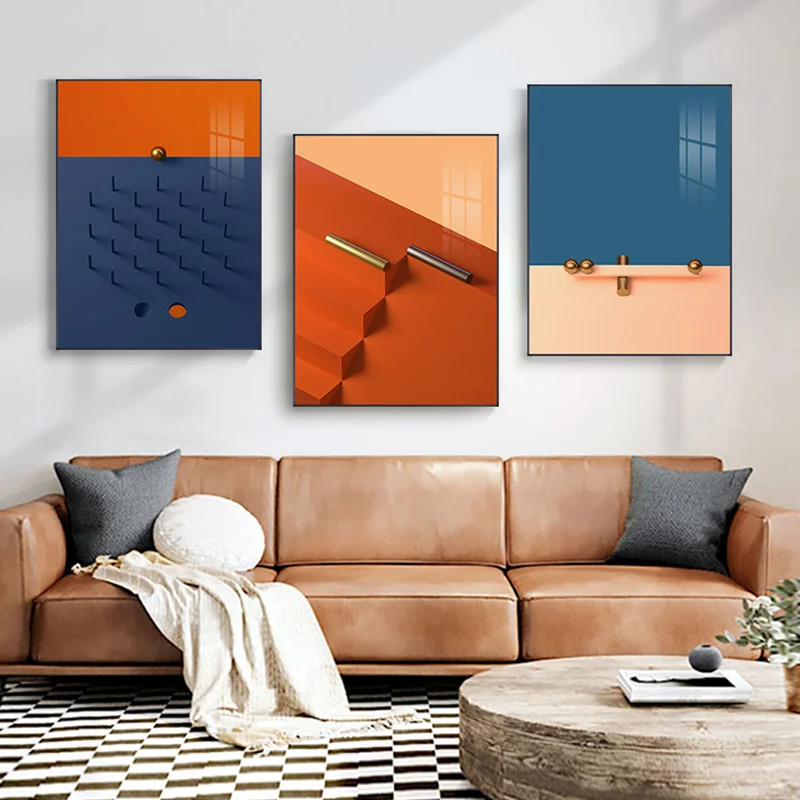 Абстрактный геометрический настенный постер, архитектура, холст, живопись, оранжевый, синий, голубой, художественные принты, скандинавские картины, декор для гостиной