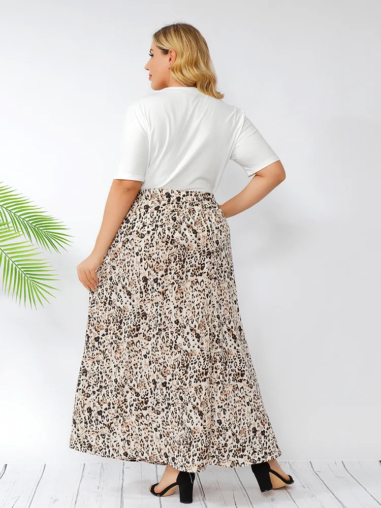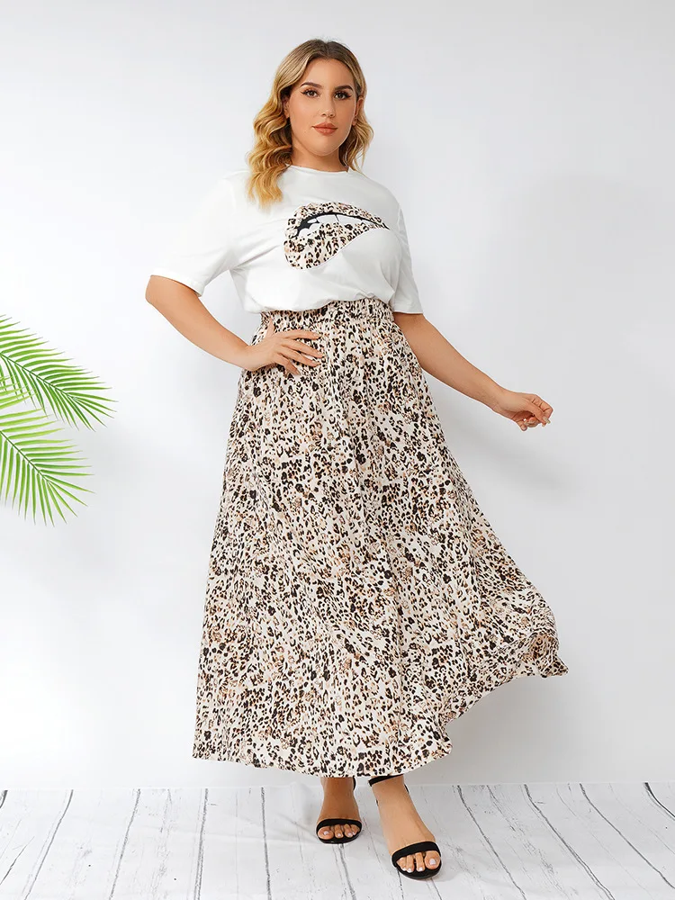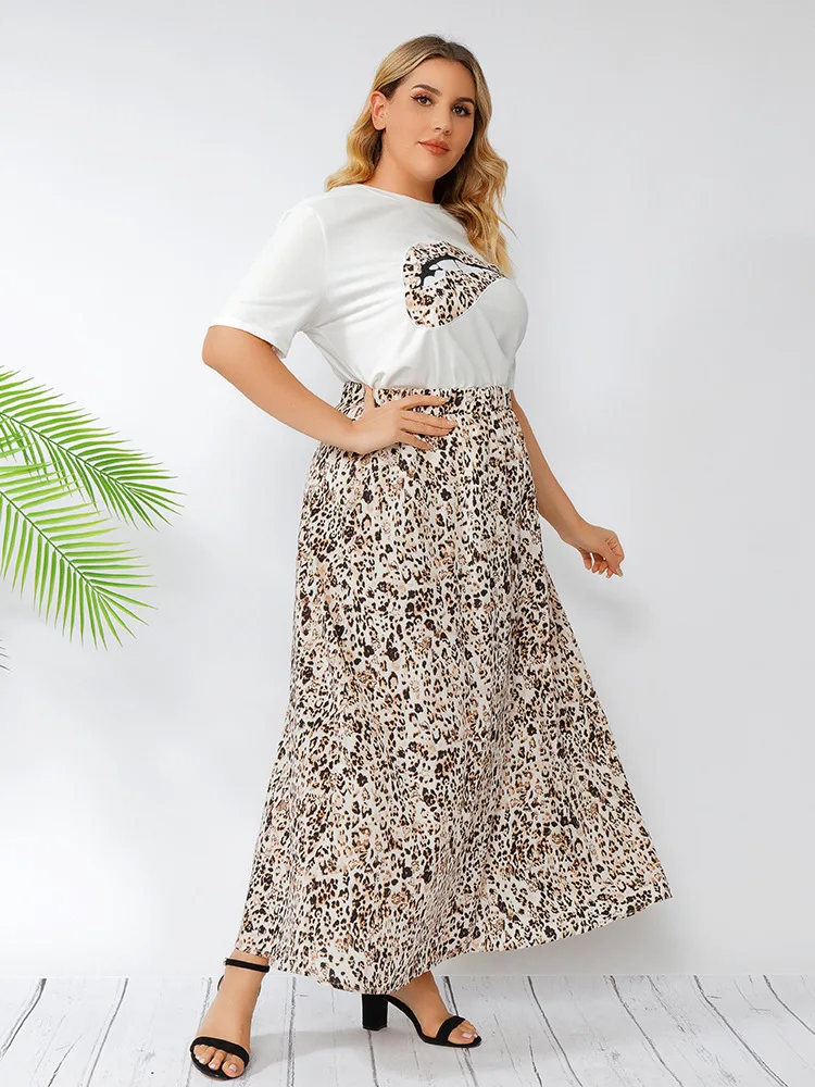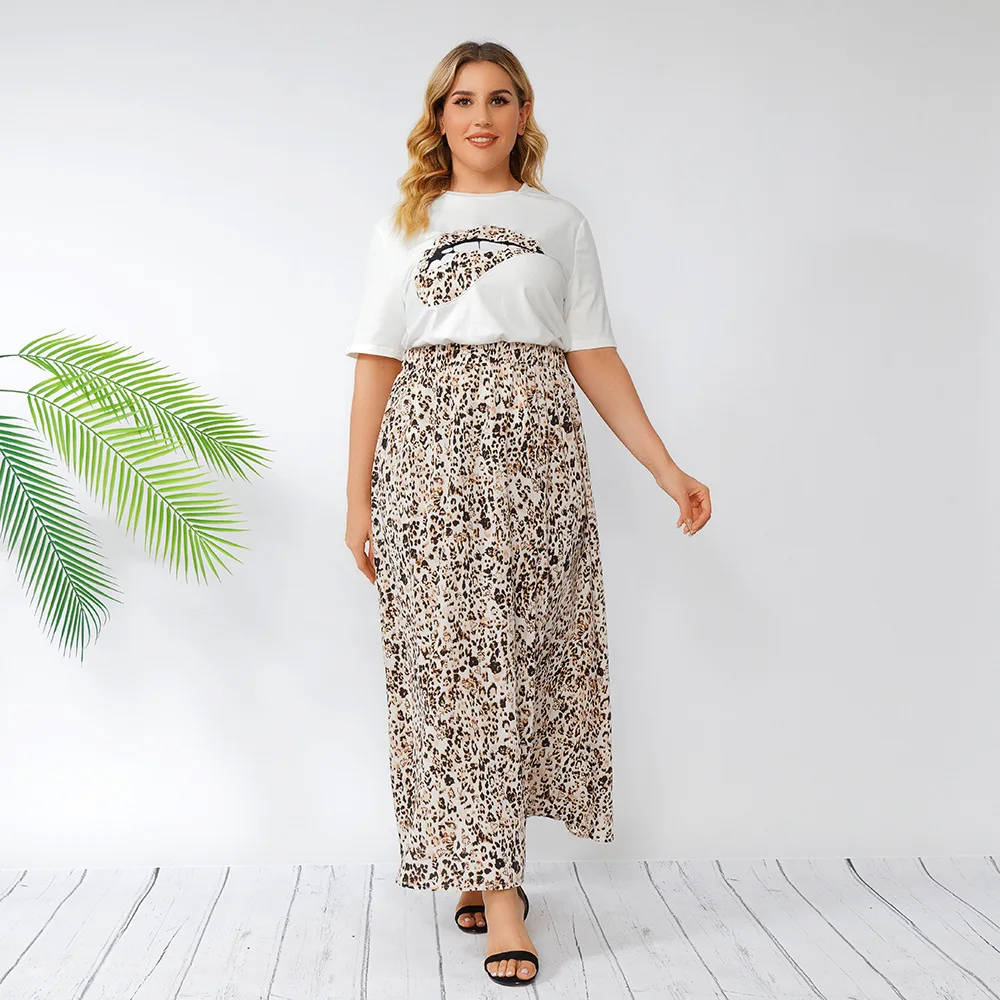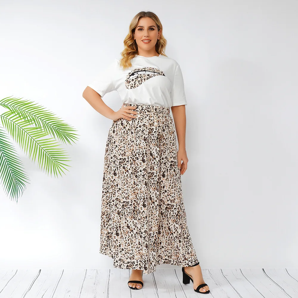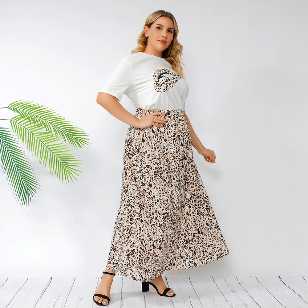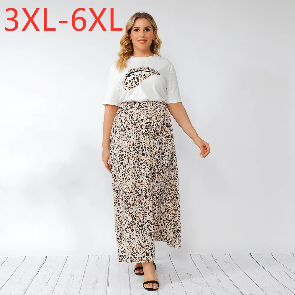Новинка 2021, женская летняя размера плюс, Женская свободная футболка с коротким рукавом и длинная юбка с цветочным принтом, костюм из двух предметов, 3XL, 4XL, 5XL, 6XL