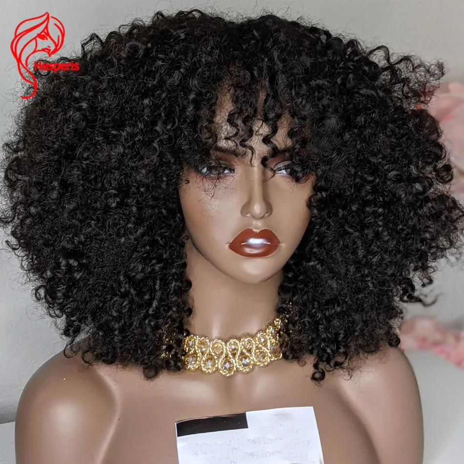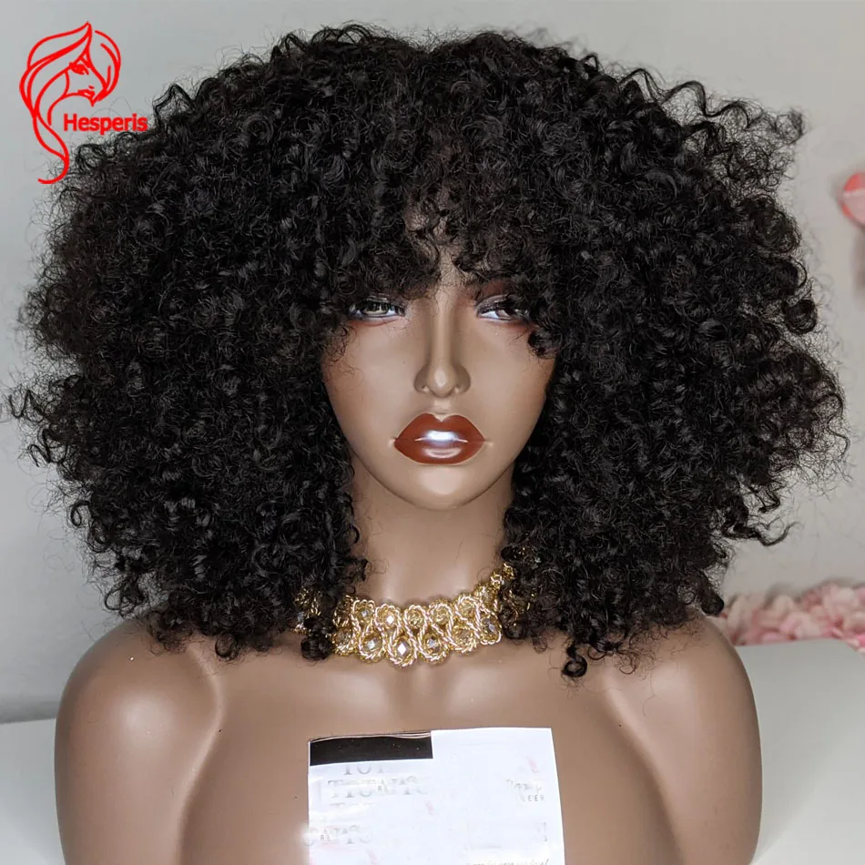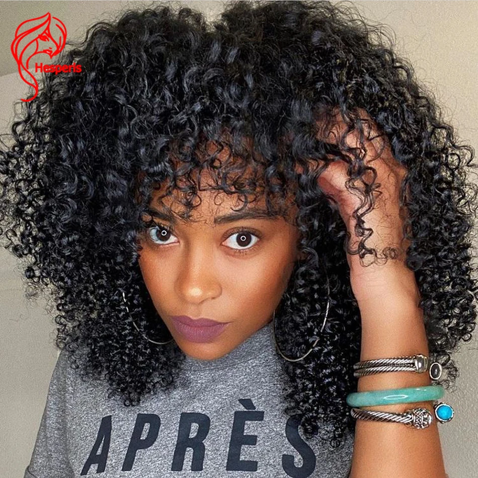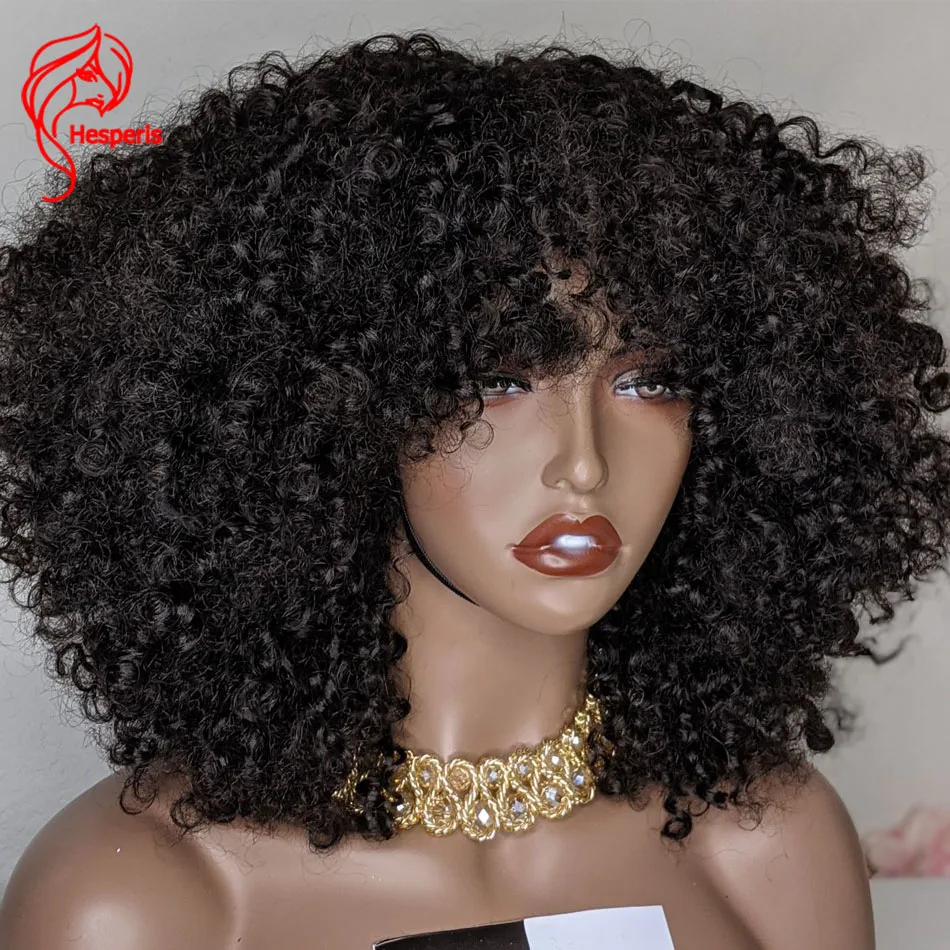 Hesperis 200 плотность Бразильские короткие кудрявые человеческие волосы парики с челкой афро кудрявые волосы основная часть полностью машинная работа парик Remy
