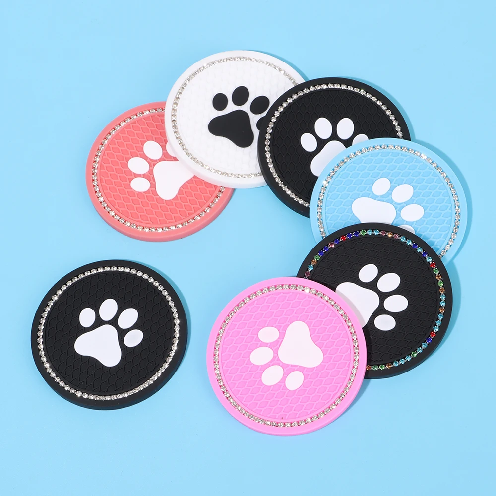 2,75 дюймов Bling "собачья лапа" Автомобильные подставки с украшением в виде кристаллов Стразы автомобильный подстаканник силиконовые Противоскользящие коврики авто аксессуары для интерьера