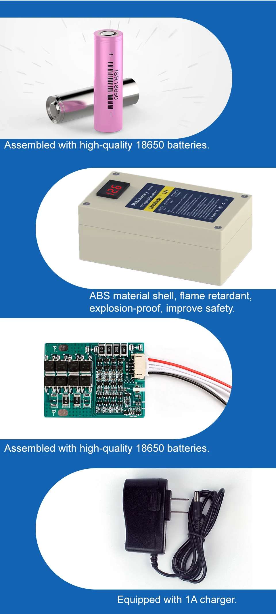1. 12V 10Ah литиевый аккумулятор2. 12,6 V 1A зарядное устройство (по ТИХООКЕАНСКОМУ летнему времени США, зарядное устройство для розеток европейского стандарта)3. 0,25 м DIY gife линия