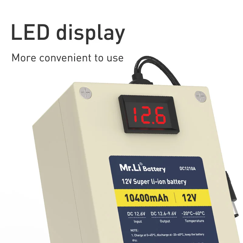 Модель батареи 12V 10AТип батареи: литий-ионный аккумулятор 18650Номинальное напряжение: 12 ВНоминальная мощность: 10 АчКомбинация: 3S5PМгновенный ток разряда: 20AТок непрерывного разряда: 10AНапряжение зарядки: 12,6 VВремя цикла: более 1000 цикловТемпература зарядки: 0 ~ 45 ℃Температура разряда: -20 ~ 60 ℃Температура хранения: -20 ~ 45 ℃Вес: около 0,92 кгРазмер батареи: 90*60*156 ммДиапазон рабочего напряжения: 9,6 V-12,6 VЗащита от избыточного заряда благодаря напряжение: 12,6 V + 0,05 VПредохранение от перенапряжения: 9,6 V + 0,05 V