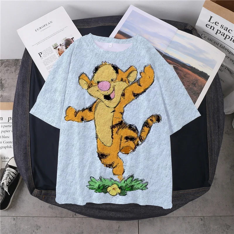 Новая женская футболка с 3D принтом Диснея в стиле Харадзюку, повседневный летний топ с милым мультяшным рисунком, Женская свободная футболка, милая футболка, топ