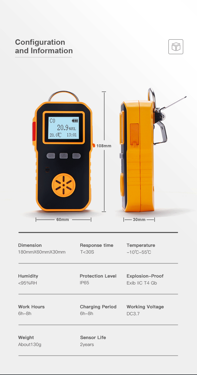 Портативный детектор газа Bosean CO H2S O2, взрывозащищенный промыш...
