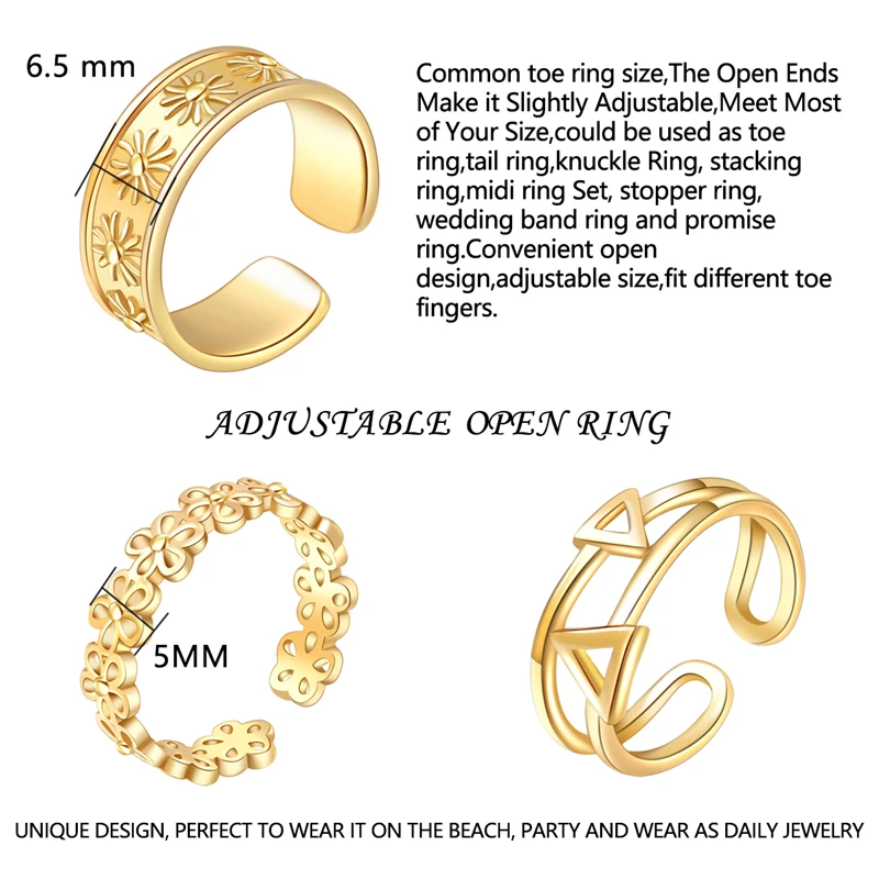 【Модные кольца для пальцев ног набор состоит из 8 модных серебряных/золотых колец в костюме. Эти кольца с открытым носком в разных стилях отвечают вашим разным потребностям каждый день. Отличная сделка и стоит носить. Уникальный дизайн, никогда не выходит из стиля, идеально подходит для ношения на пляже, вечерние, а также для повседневной носки. Также вы можете поделиться ими со своими близкими друзьями. 【Регулируемый Размер кольца 】общий Размер кольца носка, открытые концы делают его слегка регулируемым, отвечают большинству ваших размеров, могут быть использованы в качестве кольца для пальцев ног, хвостового кольца, кольца для суставов, кольца для укладки, набор Колец миди, кольцо с пробкой, обручальное кольцо и кольцо с обещанием. Удобный открытый дизайн, регулируемый размер, подходит для разных пальцев ног. 【 Материал высокого качества 】набор ножных колец изготовлен из высококачественной меди, никеля без свинца, высокая устойчивость к ржавчине и потускнению, более прочный. С покрытием из серебра/розового золота, добавить больше блеска и защиты Кольца, более длительный срок службы. [Идеальный подарок] Качество и практичность нашего кольца для пальцев для женщин хороши, кольца с открытым носком упакованы в бархатную сумку. Эти кольца с золотым носком-идеальное летнее украшение для ног для любого случая, повседневное и официальное. Золотые кольца сделают вас очаровательными и модными на пляжные вечерние, танцевальные, свадебные, у бассейна, летние вечерние коктейльные и другие мероприятия. Этот набор колец с носком-идеальный подарок для женщин и девочек на день рождения, юбилей, День матери или другие важные дни.
