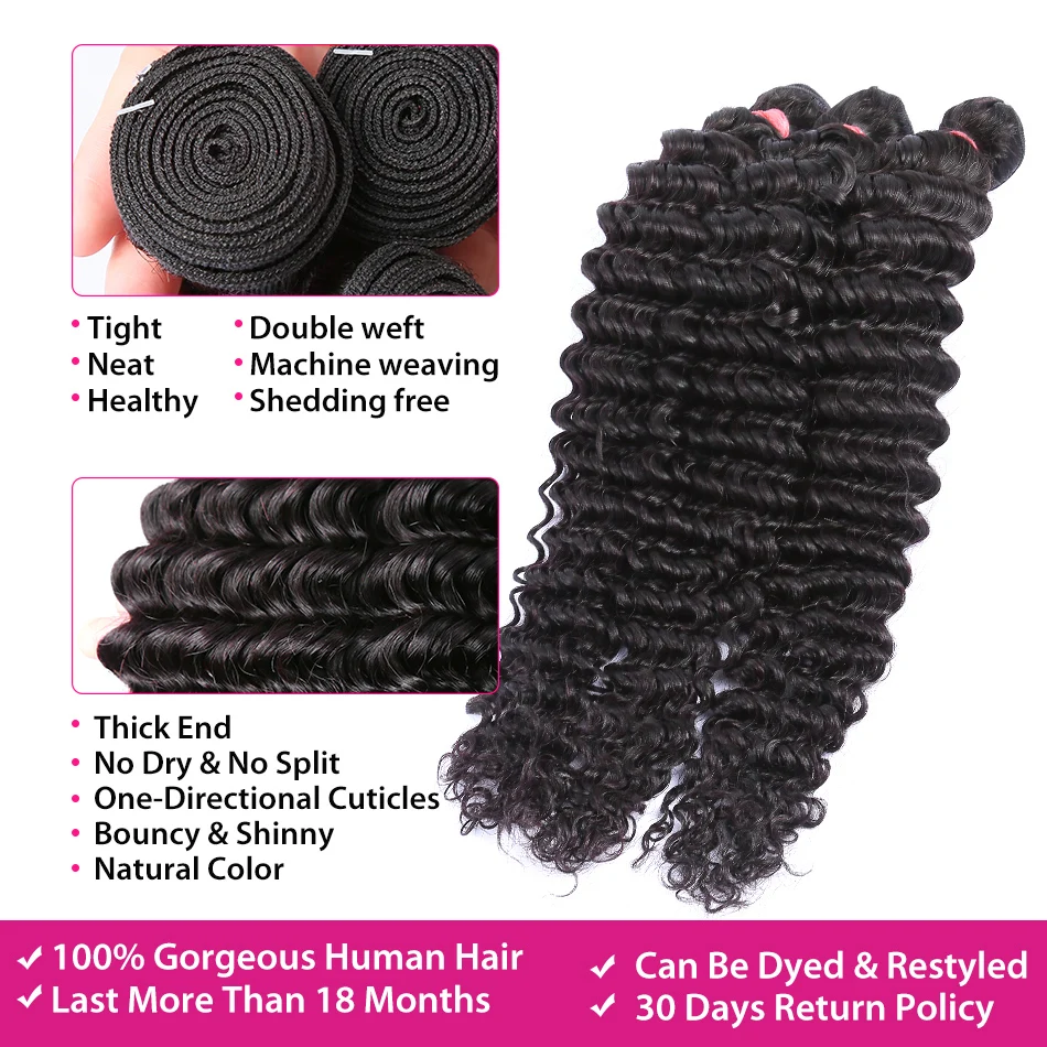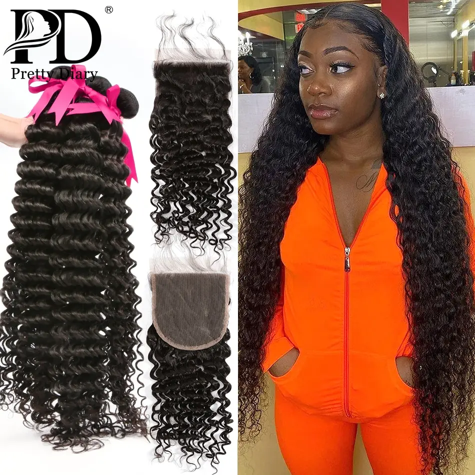30 32 дюйма Глубокая волна человеческие волосы пряди с 4x4 кружева закрытие 3 4 Virgin кудрявые фронтальные свободные воды и оптовая торговля