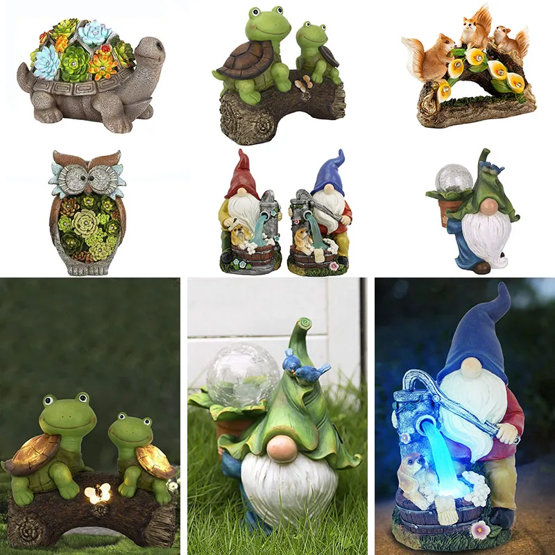 Фигурка гнома из смолы, светодиодная скульптура на солнечной батарее, уличная садовая статуя декоративная статуэтка, украшения для гномов, животных, микроландшафт, креативные поделки